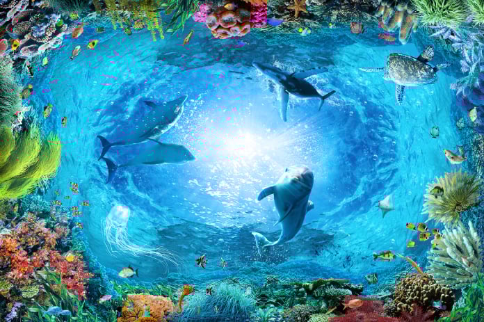 Vibrant Underwater Serenade Wall Design