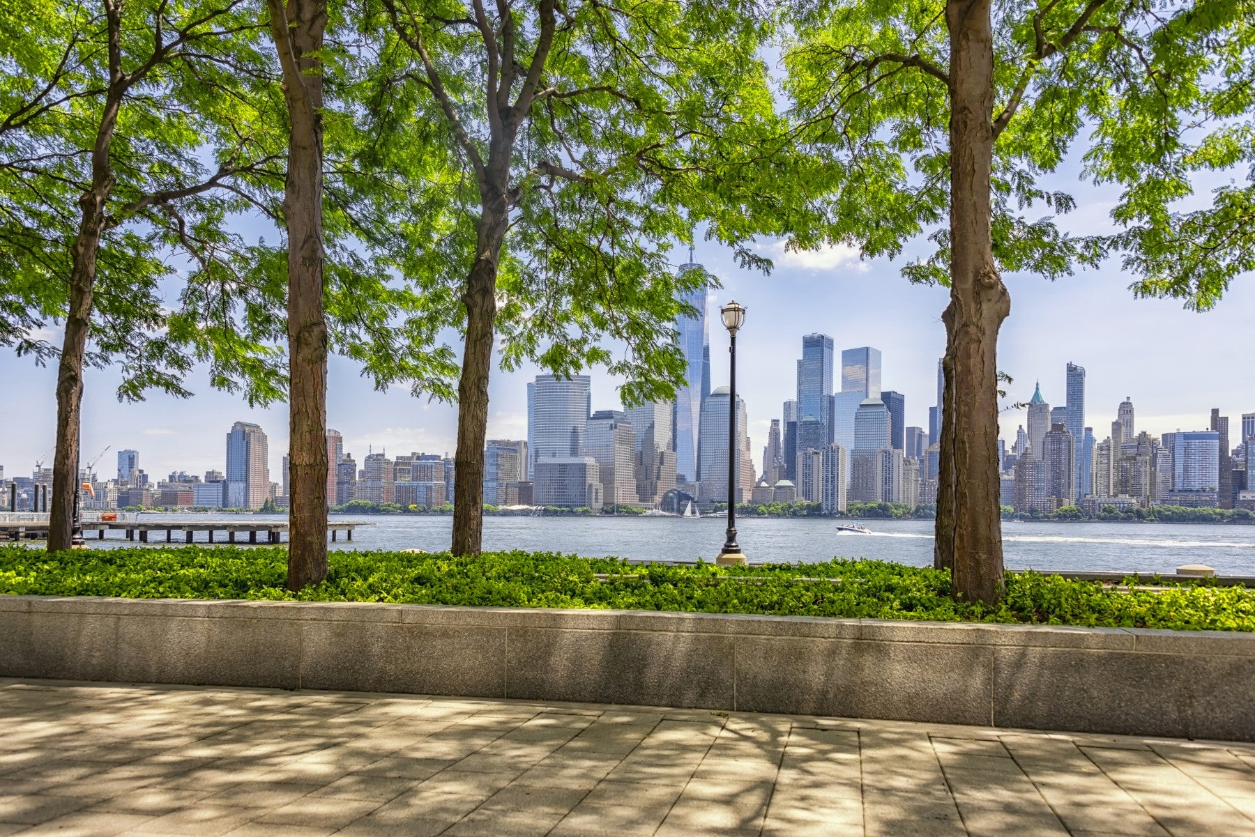 New York riverfront scenery peel and stick wallpaper