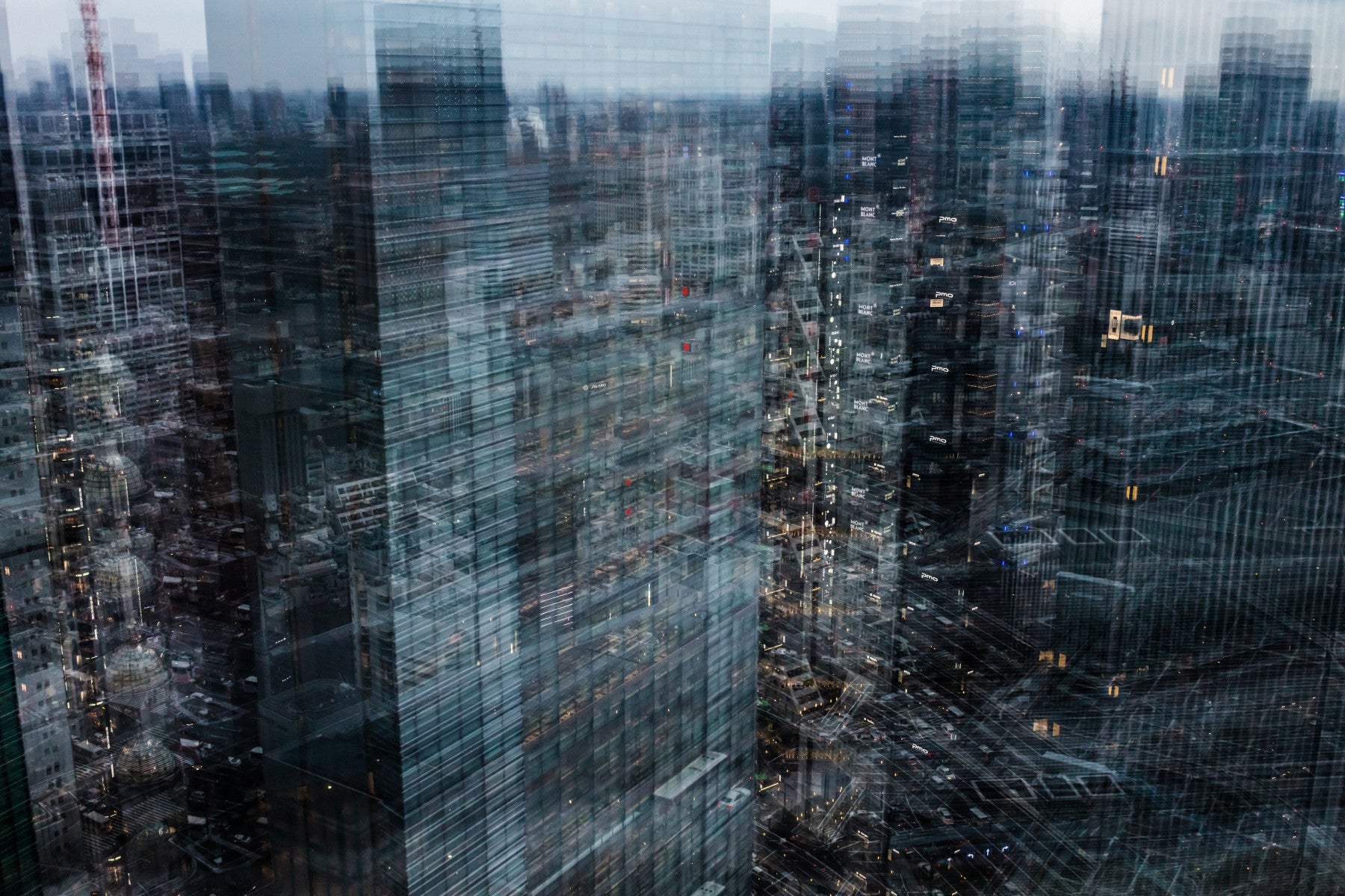 Ethereal and haunting, 'Urban Phantom' captures the city's skyline as a ghostly apparition. Multiple exposures and reflections create a blurred, dreamlike cityscape, where towering skyscrapers seem to fade in and out of existence. The cool, muted tones of grey and blue enhance the melancholic mood, evoking a sense of mystery and impermanence. This image transcends traditional cityscapes, transforming concrete and glass into spectral forms. Delicate details of streetlights, building signage and architectural structures barely peek through the fog, adding an intriguing depth to the abstract composition. Perfect for those who appreciate a touch of the surreal and a unique perspective on urban life, 'Urban Phantom' offers a captivating and thought-provoking backdrop.