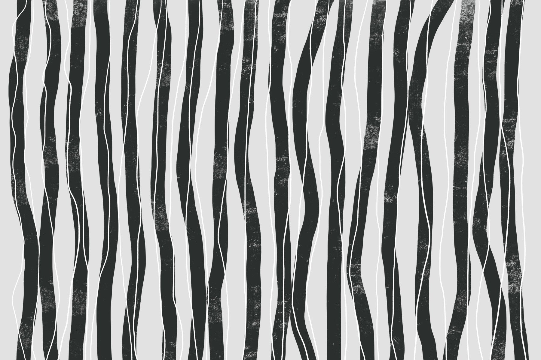 Enjoy the modern style with this graphic wallpaper for walls. It showcases bold black stripes set against a soft gray foundation. Delicately thin white lines accent the composition, adding to its visual appeal. The vertical design makes it excellent for hallways, living rooms, or bedrooms. This wallpaper can easily enhance a variety of interiors with its clean lines and modern elegance.