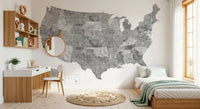 USA map with states and capitals in gray watercolor Wall Mural