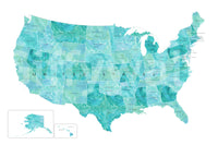 USA map with states and capitals in teal watercolour