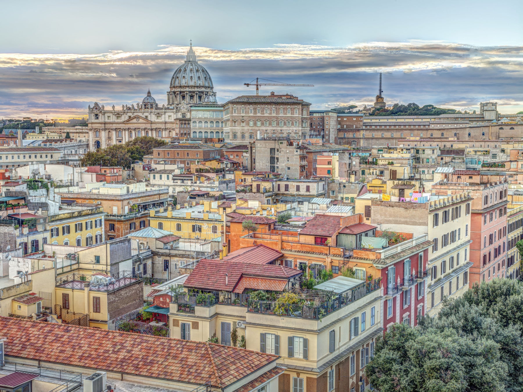 Scenic mural of St. Peter’s Basilica and Rome rooftops