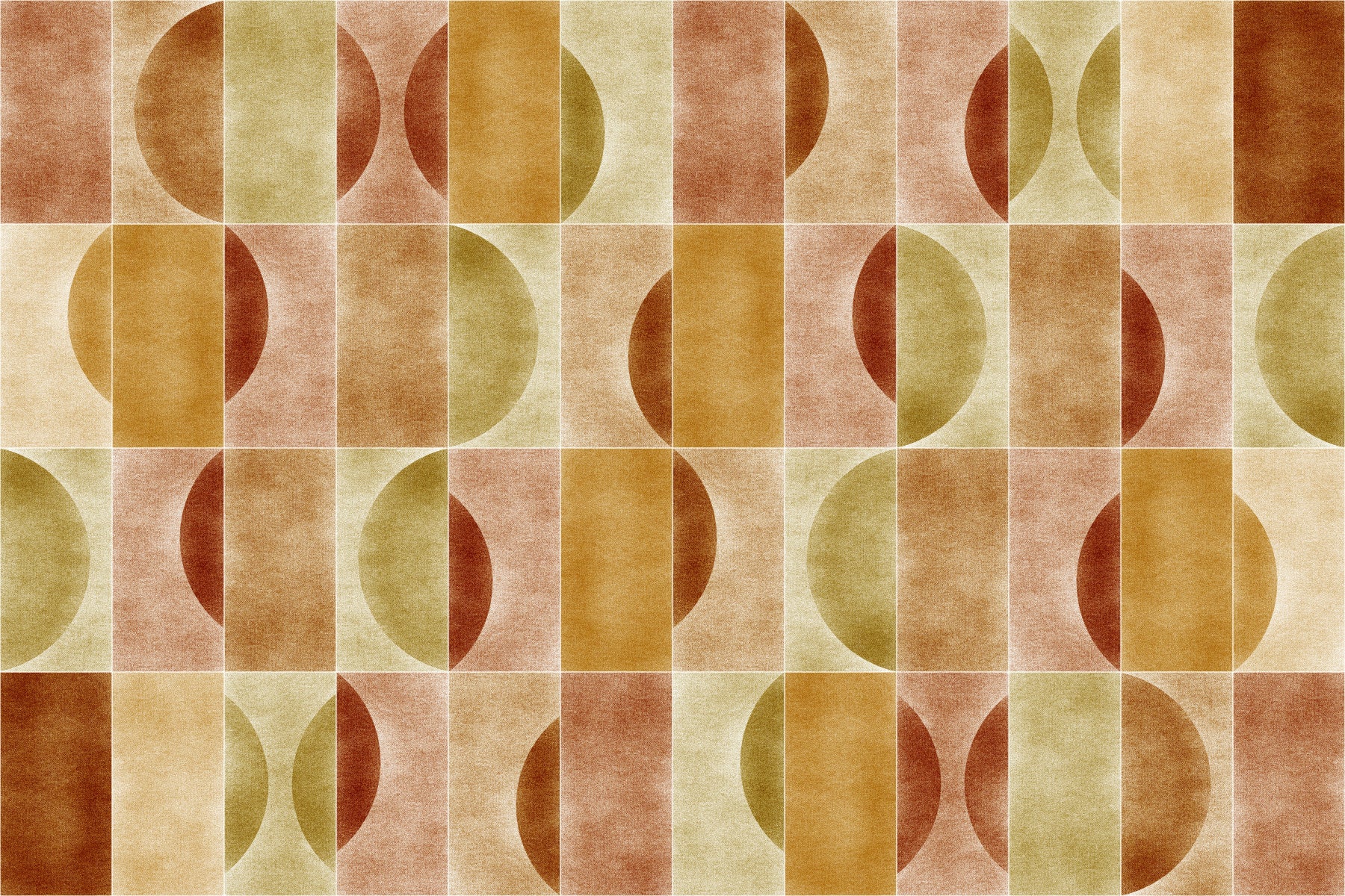 Immerse yourself in the understated elegance of 'Velluto Earthy Geometry,' a wallpaper design that blends organic warmth with sophisticated geometric precision. A rich palette of earthy tones—terracotta, ochre, and soft beige—creates a comforting and grounding atmosphere. Suede textures invite a tactile experience through the screen. Abstracted semi-circles are juxtaposed with clean vertical rectangles, offering a compelling visual rhythm that is both structured and free-flowing. The design evokes a sense of natural harmony, reminiscent of sun-baked clay and weathered landscapes. 'Velluto Earthy Geometry' is perfect for creating a serene and stylish backdrop in any space, adding a touch of refined rustic charm.