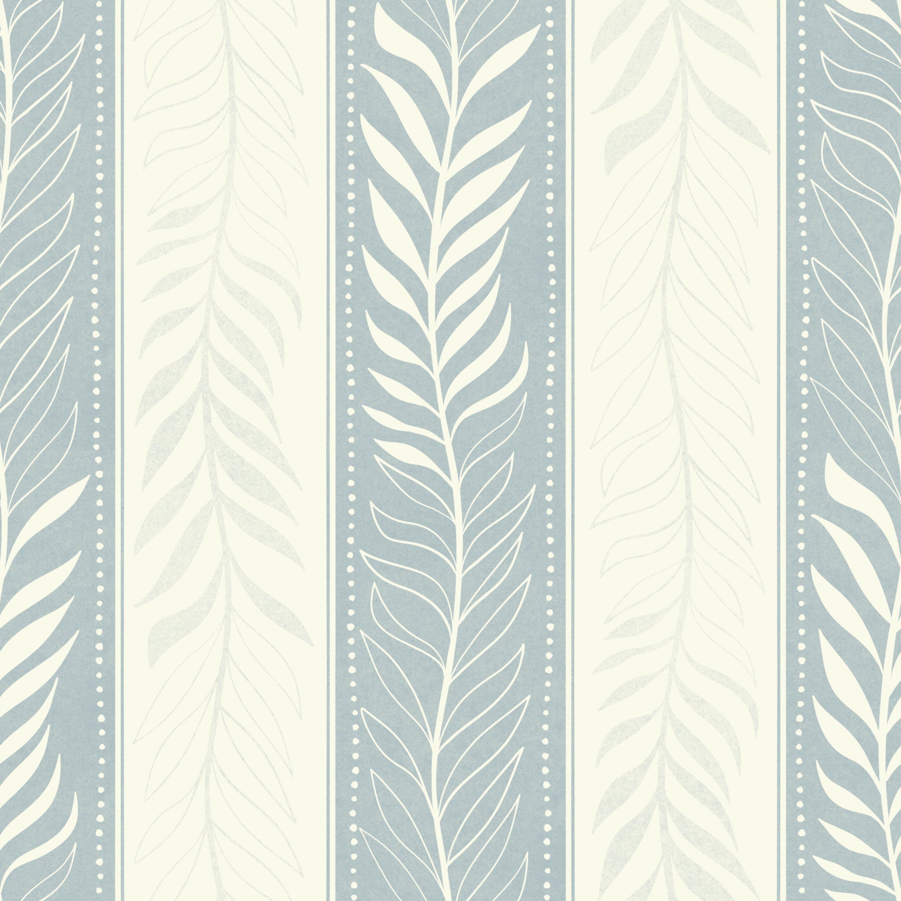 Bring an element of understated elegance into your home with this chic wallpaper. Vertical stripes alternate between muted blue and off-white, decorated with streamlined leaf designs. Its neutral palette makes it versatile for various rooms, from a serene bedroom to a welcoming living room. The subtle botanical pattern introduces organic charm, while the clean lines keep it contemporary. Select this wallpaper for walls to create a refined and balanced look. It integrates well into a variety of interior styles.
