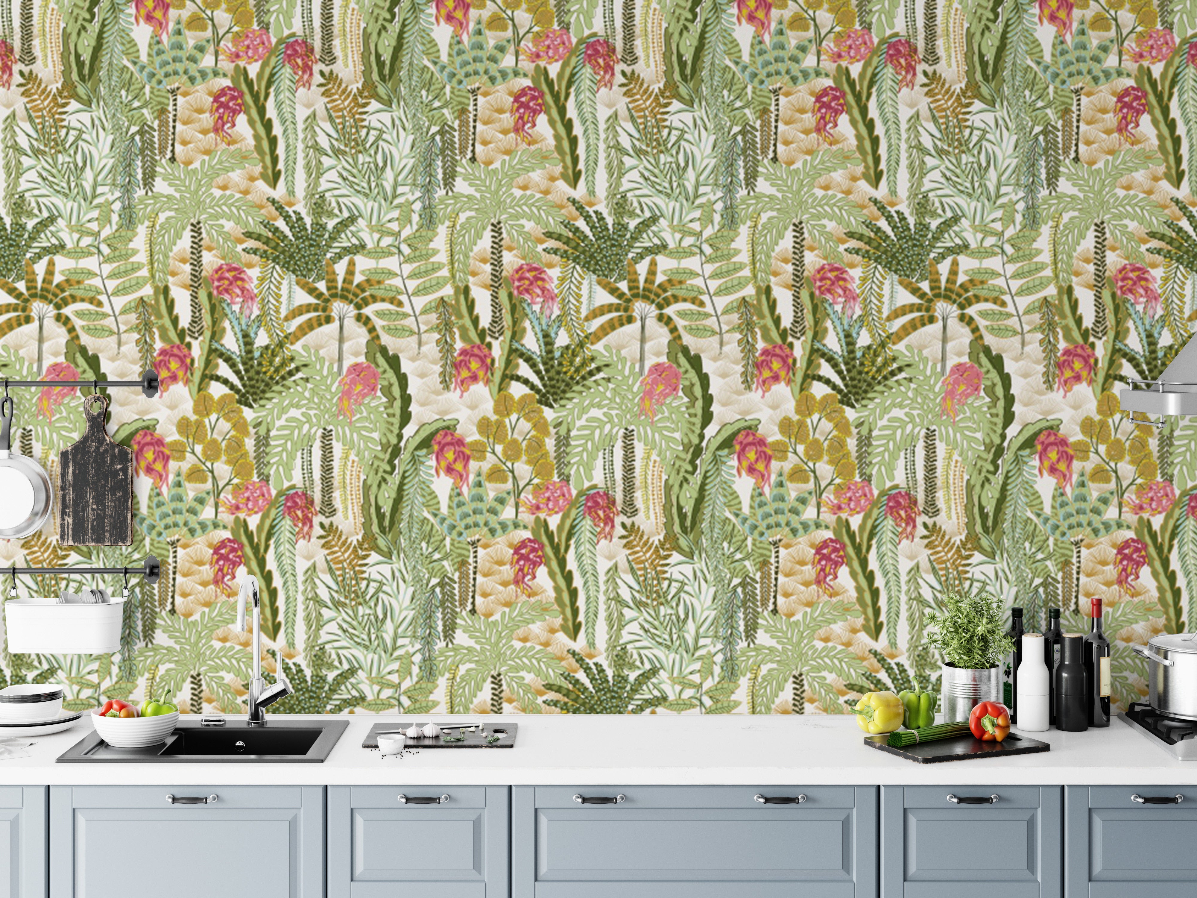 Vibrant Jungle Canopy wallpaper with intricate leaf patterns.