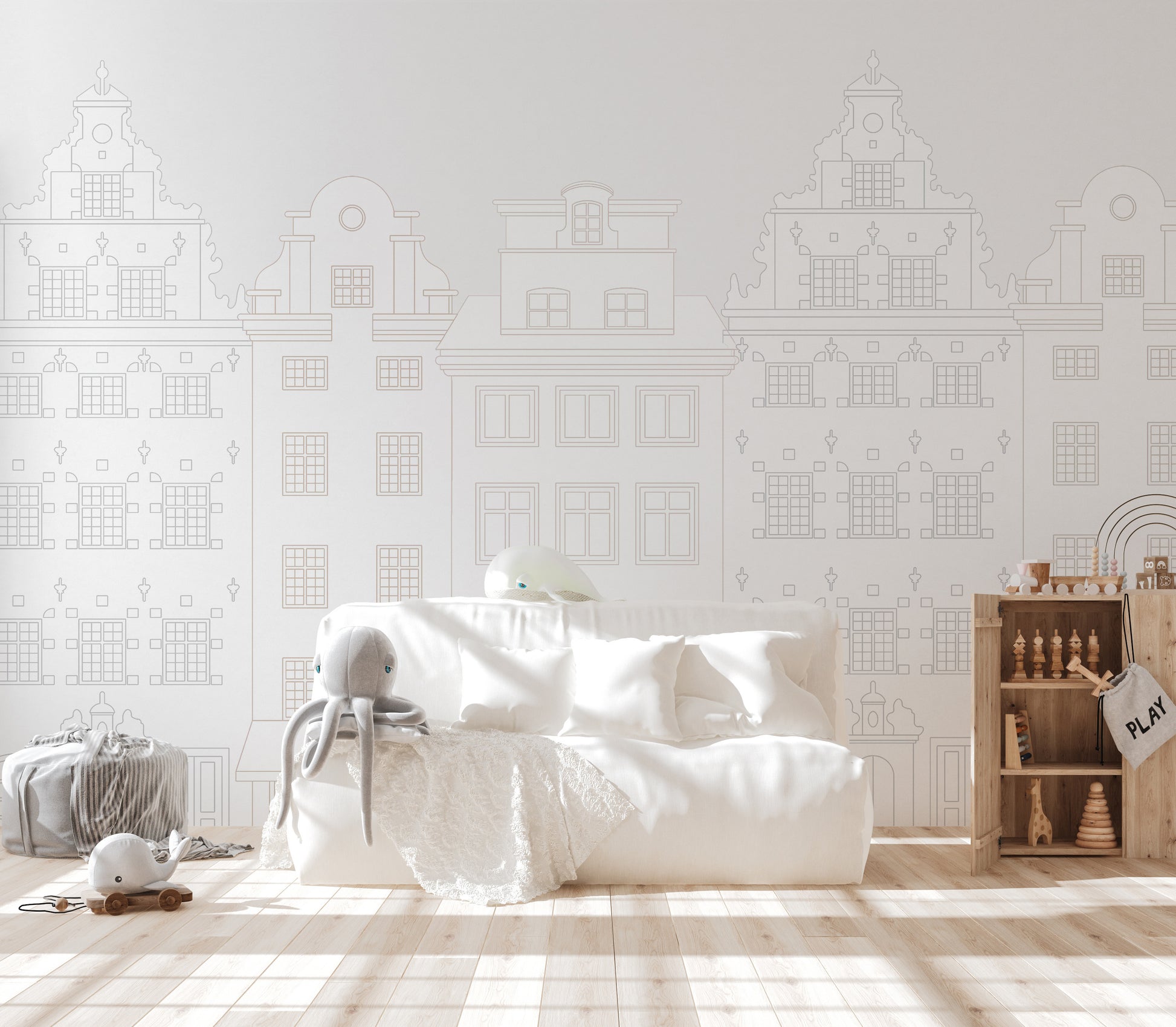 Add a timeless touch to your walls with Vintage Architectural Building Wallpaper. The delicate architectural line art wallpaper captures classic European townhouses in soft, neutral tones, perfect for living rooms, bedrooms, or offices. The European town wallpaper mural blends seamlessly with modern or traditional interiors, offering a sophisticated urban vibe. Its minimalist cityscape wall design brings structure and character without overwhelming your space. Ideal for those who appreciate fine details and subtle elegance, this wallpaper creates a unique focal point while complementing a wide range of styles and color schemes.