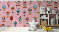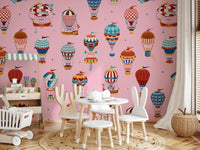 Set sail across the sky with this charming wallpaper for walls. The design presents a delightful array of vintage-style hot air balloons in an array of colours on a light pink backdrop. This wallpaper infuses any space with a sense of adventure and classic charm. It is ideal for a bedroom, study, or living room, adding a touch of whimsy to the interior. Let this adventurous design transport you to new imaginative heights!