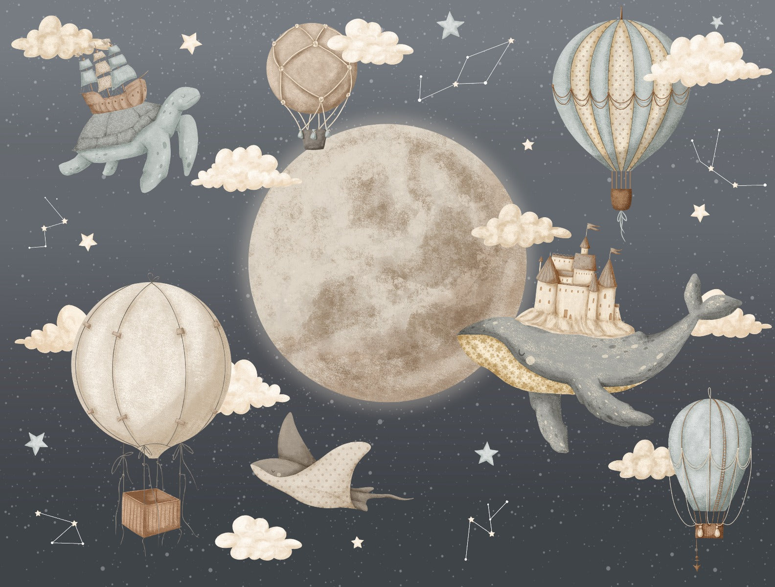 Our expansive range of vintage balloon wall murals for kids is a testament to a bygone era of elegance, reinvented for the young and the young at heart. The designs are imbued with a spirit of adventure, capturing the imagination with every hot air balloon in flight against a backdrop of tranquil skies. Perfect for a child’s bedroom or play area, this balloon wallpaper is more than just a backdrop, it is a gateway to stories and dreams. Each mural is a breeze to apply, ensuring that your child's room becomes a haven of inspiration quickly. Get yours now and watch as these murals turn an ordinary room into a wonderland of clouds and balloons with our effortless Free Delivery service.