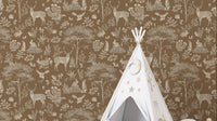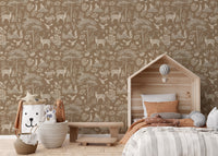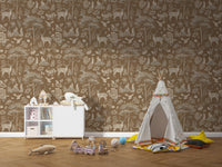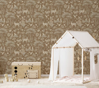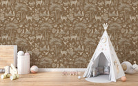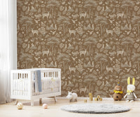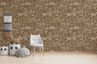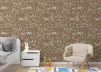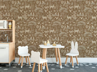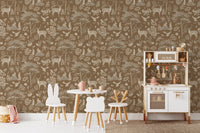 Capture the essence of nature with this vintage brown wildlife wallpaper. Featuring elegant deer, woodland creatures, and delicate foliage, this design brings a rustic charm to any space. The warm brown backdrop enhances the intricate details of the pattern, making it an excellent choice for cozy living rooms, traditional studies, or nature-inspired bedrooms. The subtle sepia tones evoke a timeless appeal, seamlessly blending with wooden furniture and earthy decor. Whether you want to create a heritage-style interior or a warm, inviting ambiance, this wallpaper adds depth and character with its classic forest-inspired design.