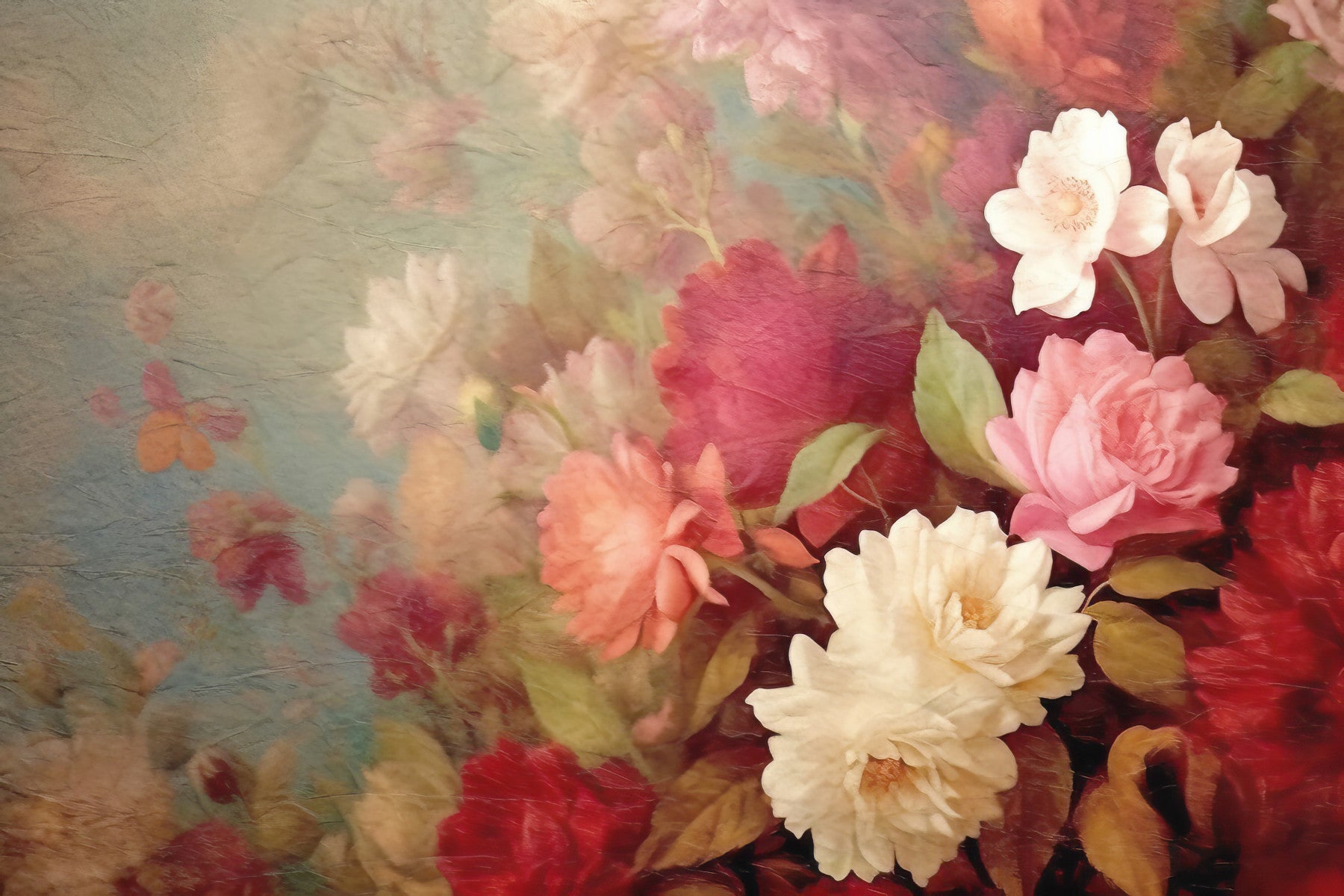 Invite a touch of romance into your home with this elegant floral wallpaper. The design showcases a collection of roses in red, pink, and cream tones, set against a soft backdrop. Delicate brushstrokes add depth and texture, mimicking a classic painting. This wallpaper for walls enhances bedroom wallpaper and transforms any living room, dining room, or entryway with its soothing ambiance. The botanical print complements modern interiors.