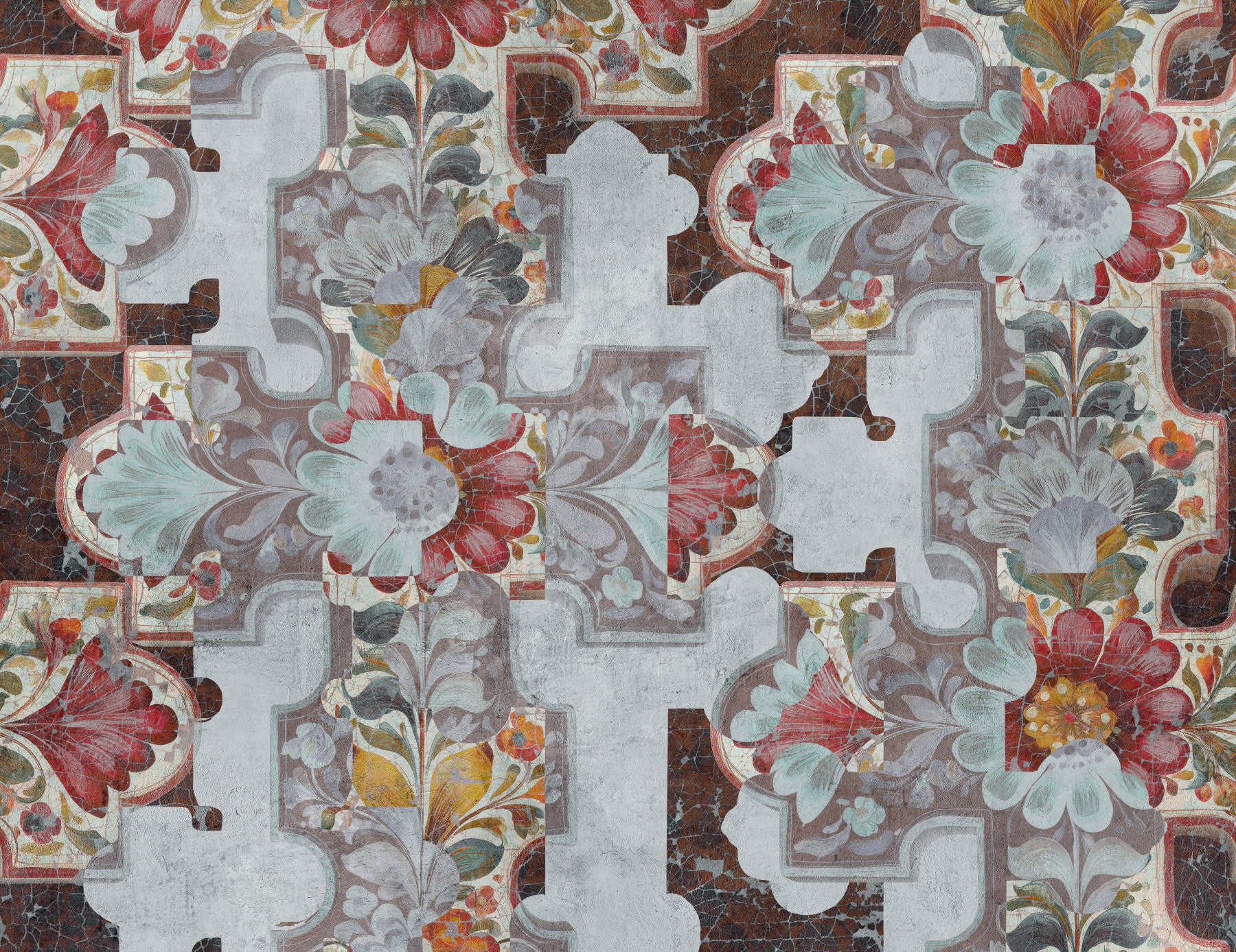 Step back in time with a contemporary twist with this captivating Vintage Floral Modern Art wallpaper. A harmonious blend of classic floral motifs and abstract design elements, this pattern brings a touch of timeless elegance to any space. Rich, weathered hues of vintage red, brown, and soft gray intertwine with stylized floral patterns, evoking a sense of old-world charm with a modern artistic edge. The wallpaper features a unique composition, overlaying traditional floral artwork with structured, geometric shapes, creating a visually intriguing contrast. The subtle texture adds depth, mimicking the look of aged frescoes or vintage tiles. This wallpaper is perfect for those seeking a statement piece that balances vintage allure with a contemporary artistic sensibility, injecting character and sophisticated style into your home or office.
