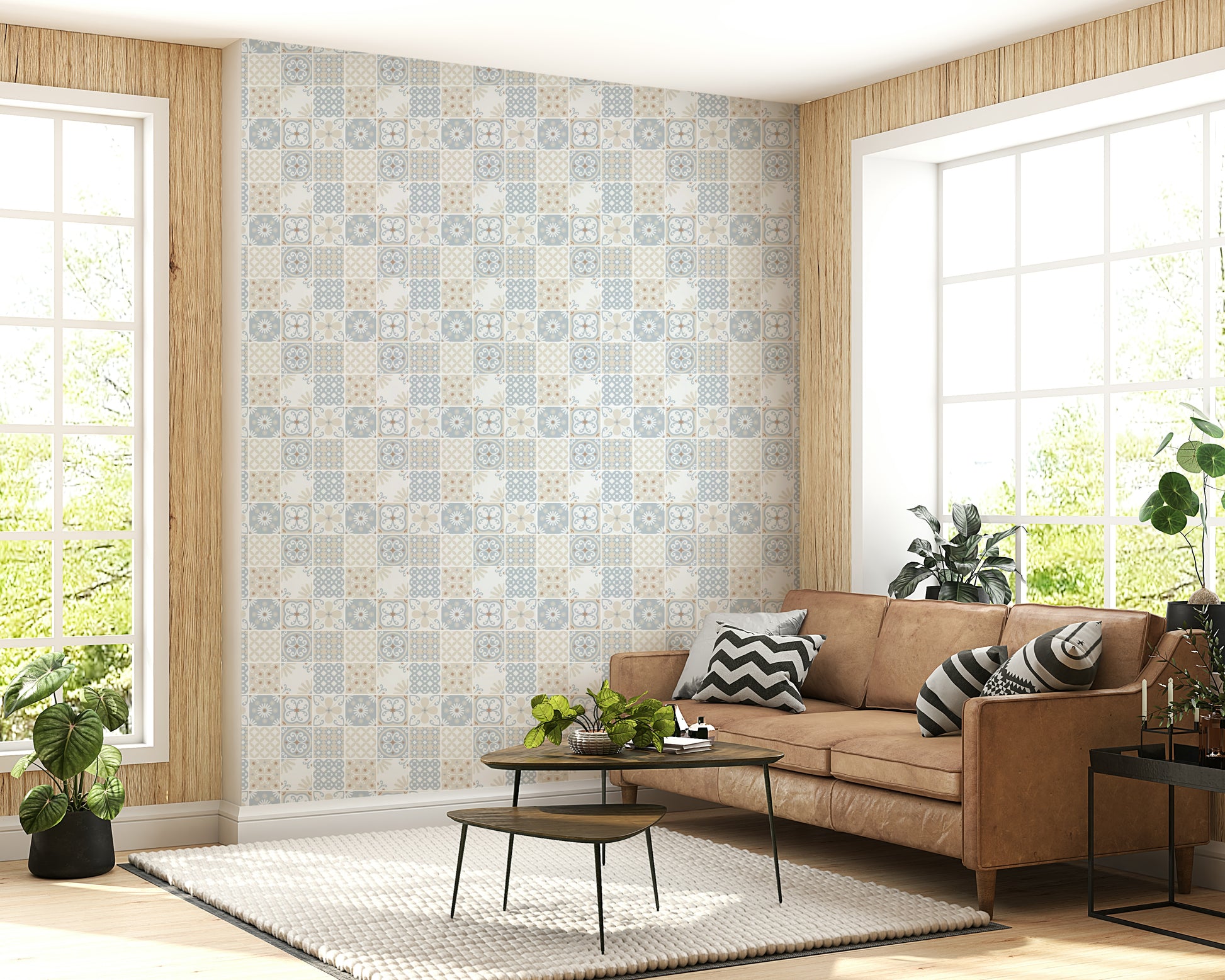 Vintage Folk Tiles – Blue Breeze Wallpaper⁠
