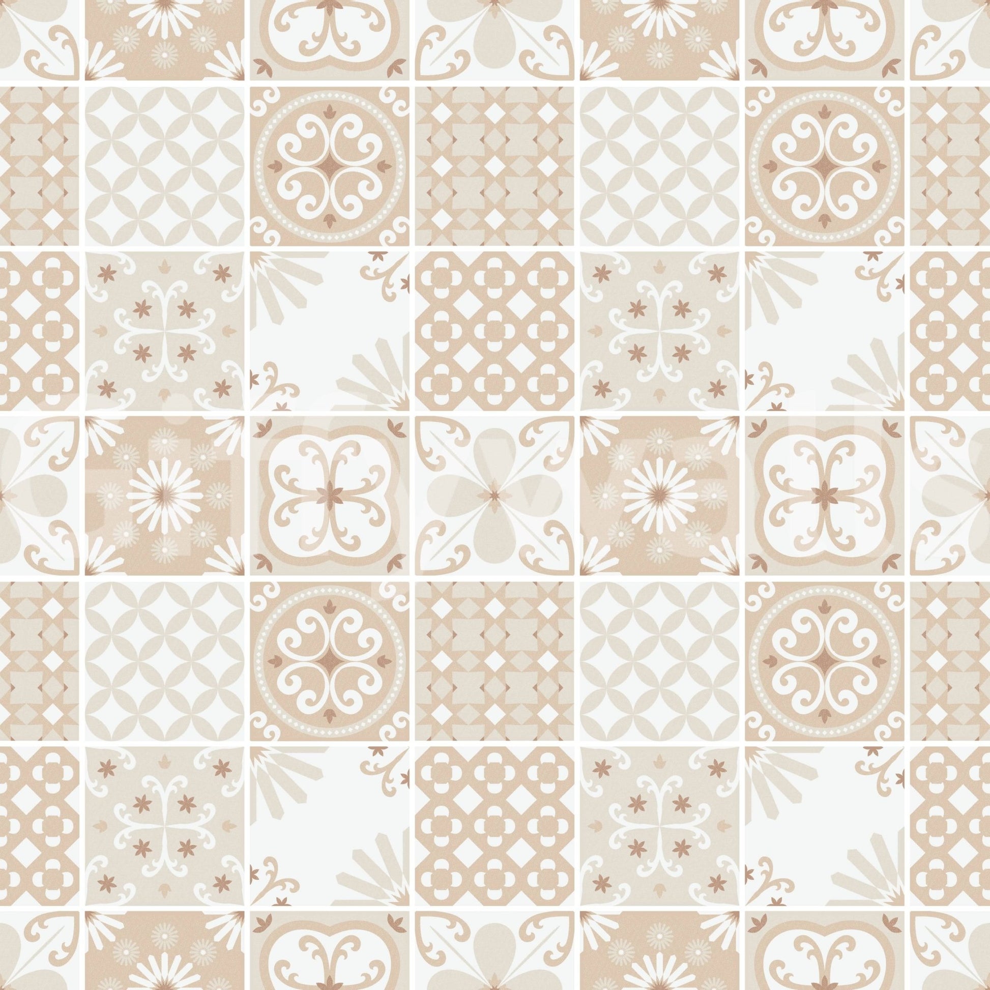 Vintage Folk Tiles – Sand Beige Wallpaper