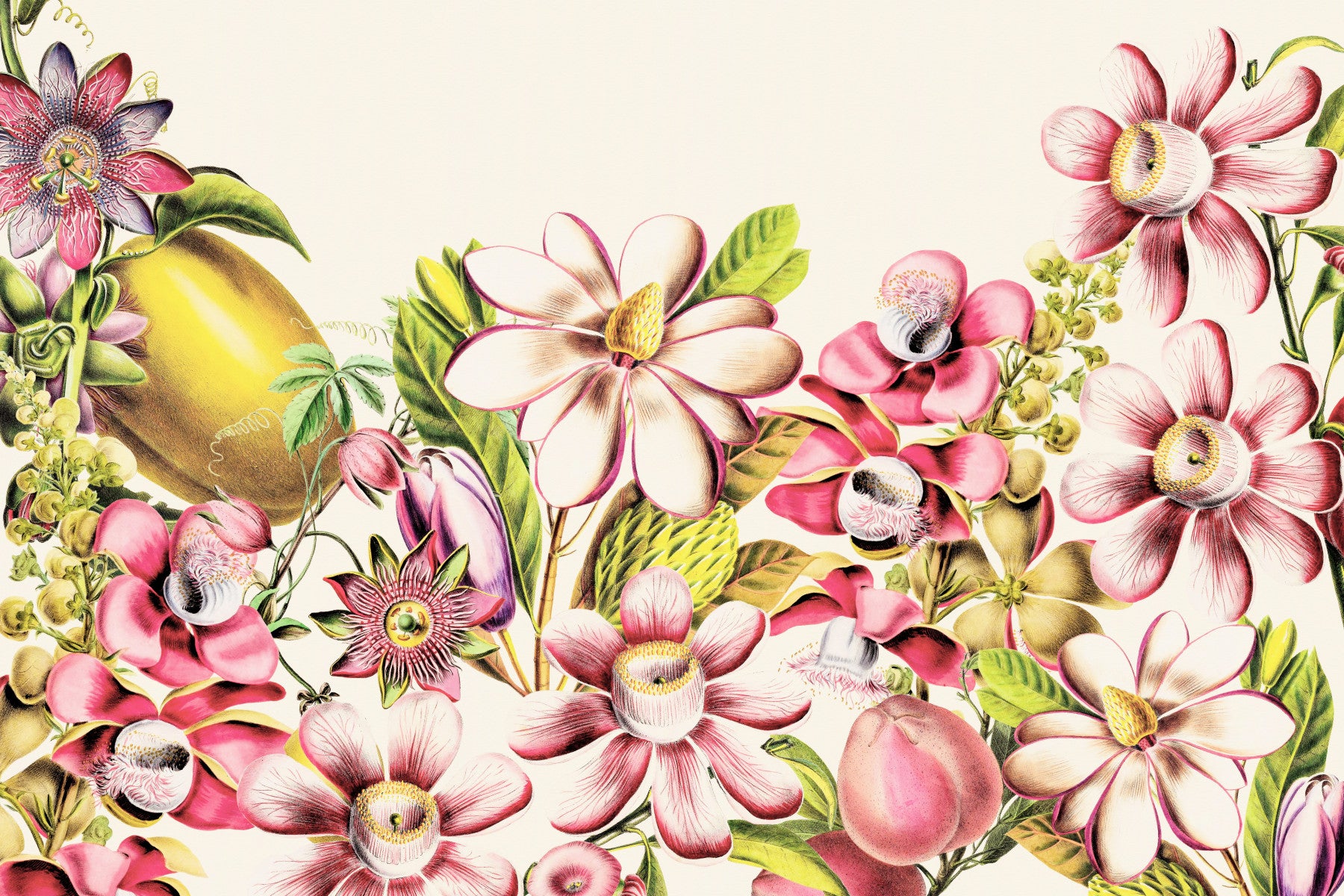 'Vintage Garden Delight' is a wallpaper design that captures the timeless beauty of a classic botanical print. The wallpaper features a breathtaking array of flowers and fruits, rendered with exceptional detail and accuracy. Rich jewel tones of pink, crimson, and gold are beautifully contrasted with softer shades of cream and green. The meticulously crafted illustration evokes a sense of nostalgia and elegance, transforming any space into a charming and refined haven. This timeless design is perfect for adding a touch of sophisticated vintage style to your home.