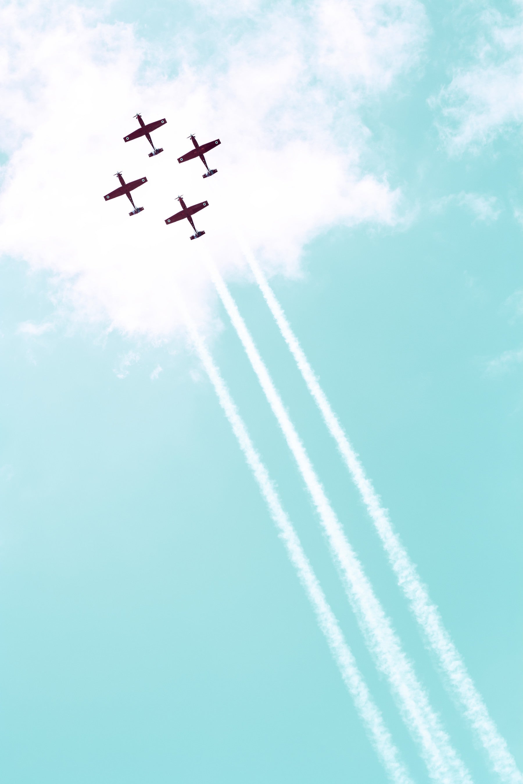 Soar back to the golden age of aviation with 'Vintage IAF XIII'. This wallpaper captures the elegance and power of a bygone era, featuring a formation of four vintage Indian Air Force aircraft cutting through a serene sky. The crisp, teal-toned background provides a striking contrast against the aircraft, while wisps of clouds add texture and depth. The trails etched behind the aircraft lead the eye through the image adding a sense of movement and energy. The image evokes a sense of nostalgia for classic flight. Perfect for aviation enthusiasts or anyone seeking a touch of vintage charm for their digital screens, 'Vintage IAF XIII' adds a touch of refined adventure to your device.