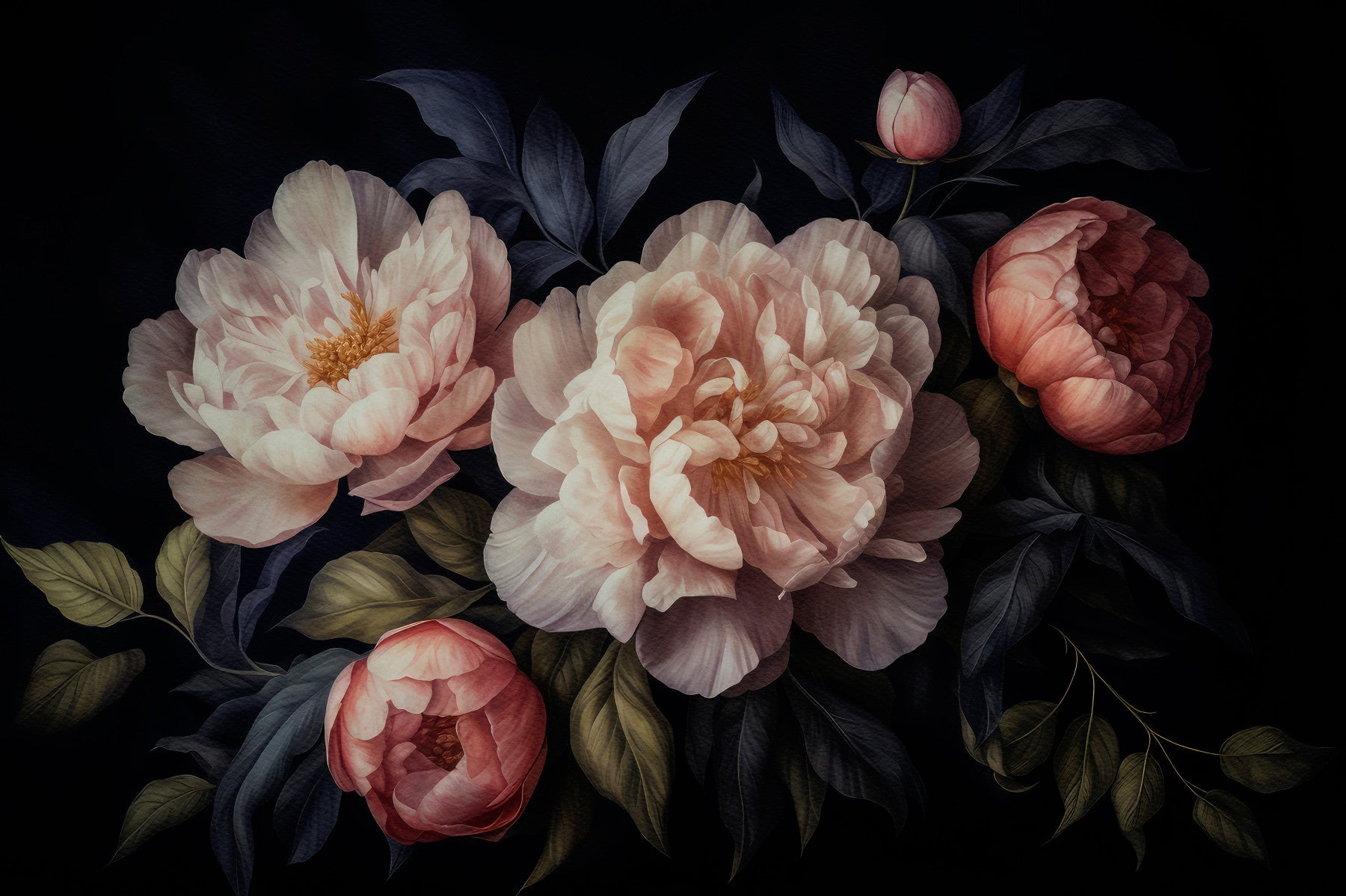 Vintage Midnight Flower Peonies Garden Wall Mural