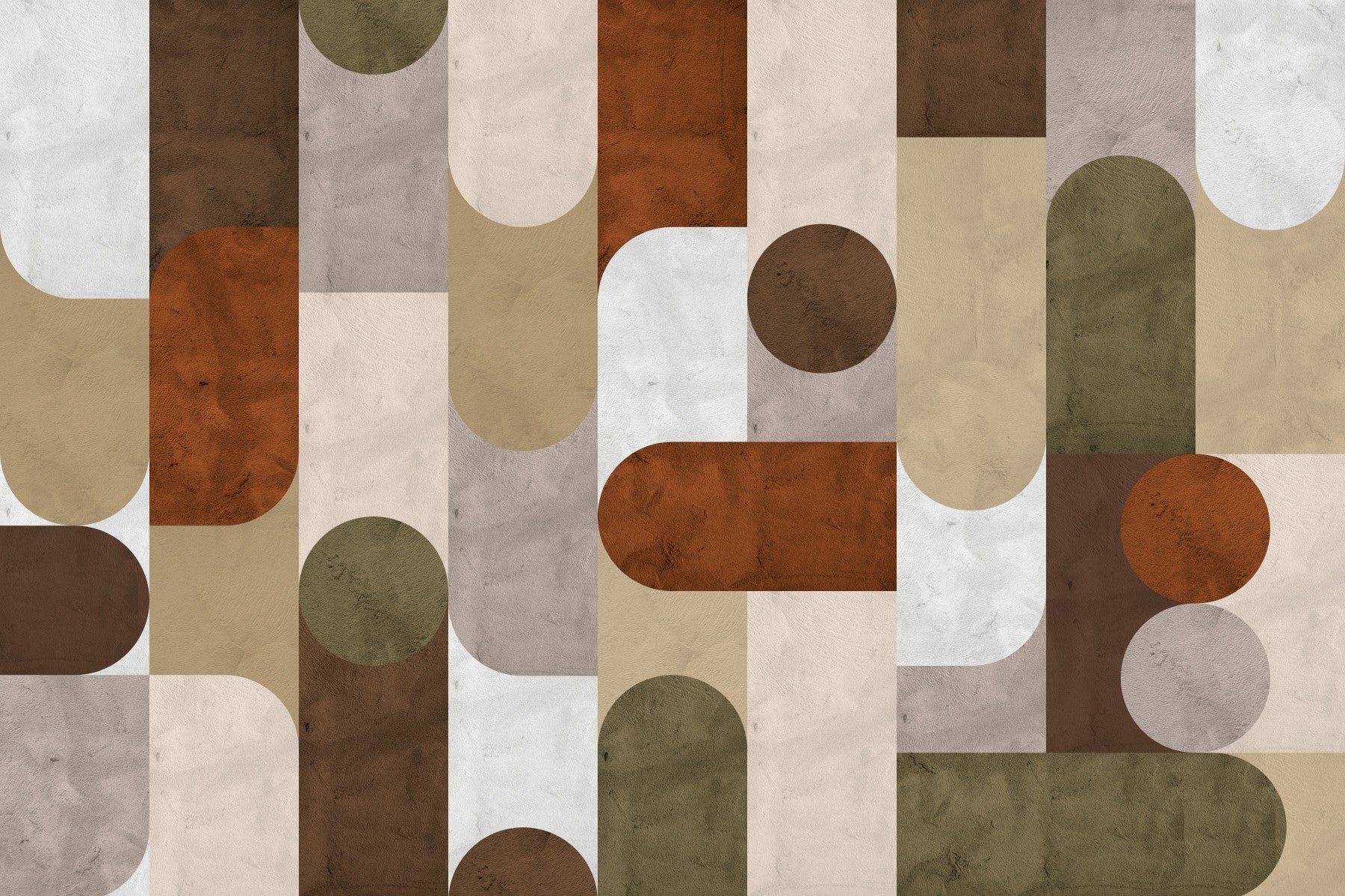 Elevate interiors using this contemporary geometric arrangement. The design presents clean lines and rounded shapes in a palette of brown, beige, and light grey. These hues bring warmth. Make the walls of a living room, dining room, or hallway unique. The wallpaper for walls works with bohemian, minimalist, or modern interiors. Generate an inviting atmosphere within a range of interior design styles.