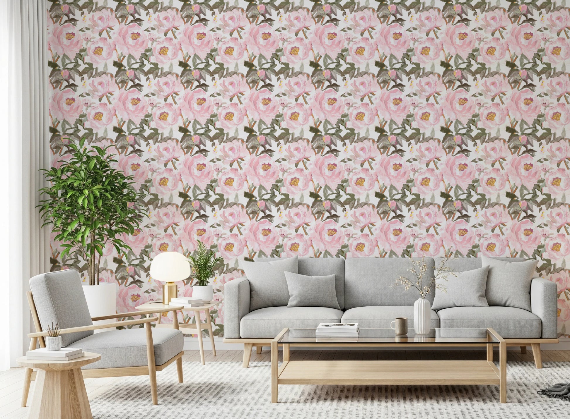 Vintage Oil Painted Pink Peonies with Soft Romantic Petals Wallpaper⁠