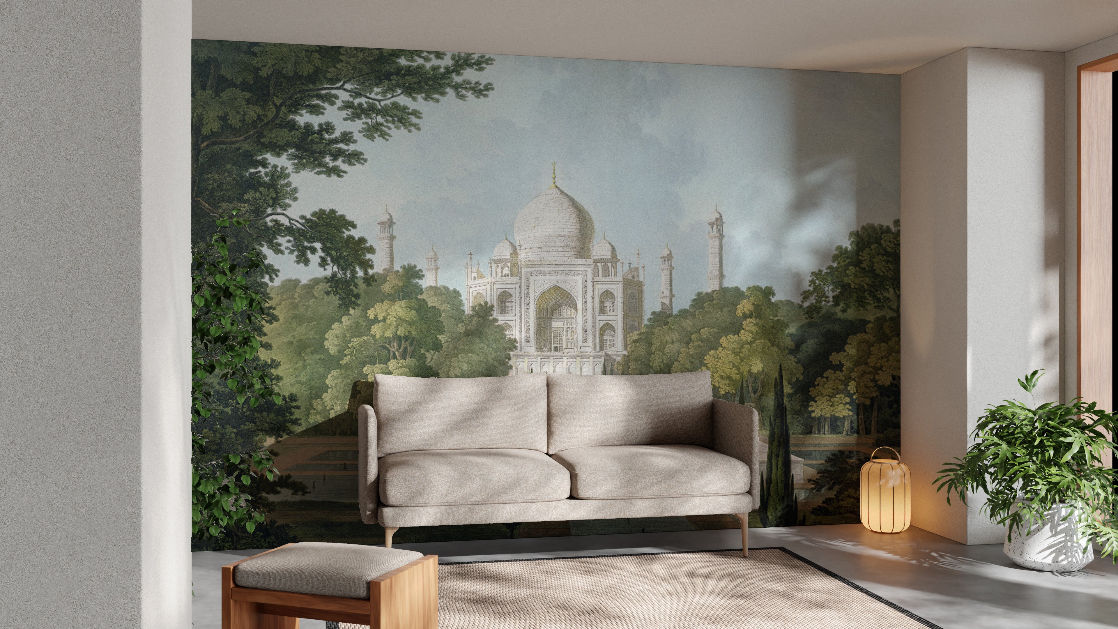 Historic Taj Mahal landscape wallpaper for elegant decor
