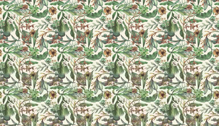 The detailed tropical motifs, reminiscent of old-world charm, are intricately interwoven to create a seamless pattern that envelops the viewer in a lush and vibrant paradise. Perfect for those looking to add a touch of the tropics to their living space, this tropical vintage wallpaper will surely be the focal point of any room.