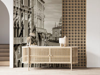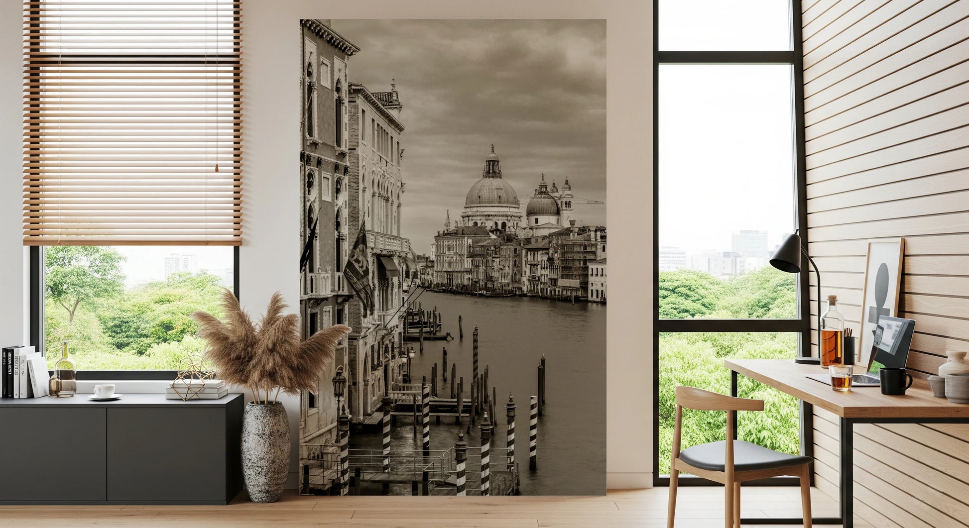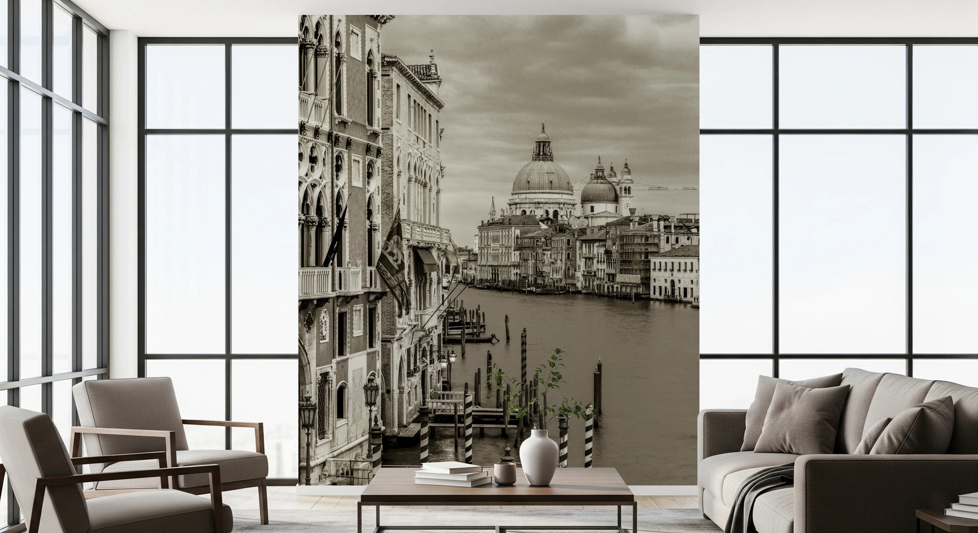 Infuse your home with the timeless elegance of Venice using this captivating wallpaper for walls. The sepia-toned landscape evokes a vintage feel, highlighting the city’s iconic buildings and tranquil waters. Ideal for creating a sophisticated backdrop in living rooms, bedrooms, or entryways, this design brings a sense of calm and old-world charm. The intricate architectural details enhance any room, adding depth and historical elegance. Transform your space with this classic Venetian scene that exudes serenity and refined taste.