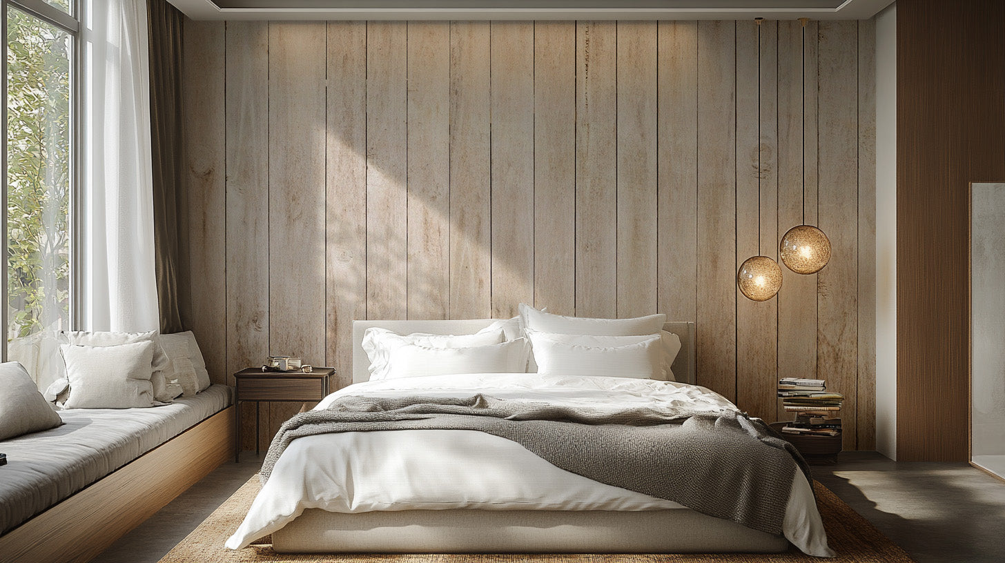 Enhance the look of your interiors with this vertical wooden panel wallpaper mural. The subtle brown bordering on the beige shade of natural wood gives it an understated textured look which is sure to WOW your guests who'd think that you have installed real wooden cladding adorning your walls. It infuses a calming ambiance with the look of a countryside wooden cottage. Team it with transitional furniture styles to give an overall effect of finesse to your space.