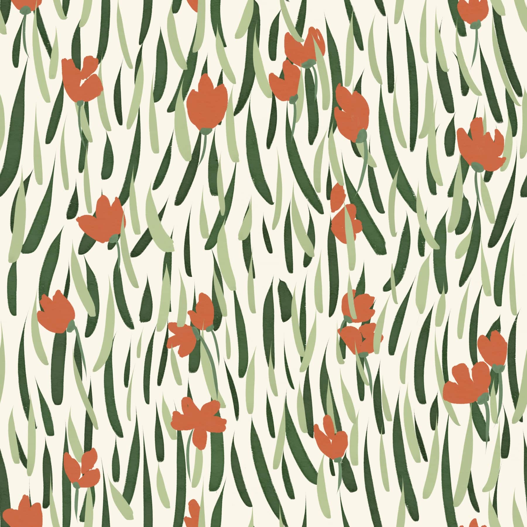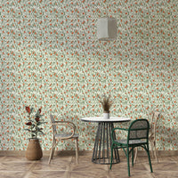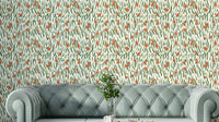 Bring movement and vibrancy to your space with Wandering Blooms wallpaper. This design features loose, painterly strokes of green leaves and scattered red-orange blossoms set against a soft cream background. The flowing arrangement gives a sense of motion, as if the flowers are swaying in the breeze. Ideal for accent walls in living rooms, dining areas, or creative spaces, this wallpaper for walls adds a fresh and modern floral touch. Its abstract, nature-inspired pattern works well with minimalist or artistic interiors, offering a bold yet natural look that’s both playful and elegant.