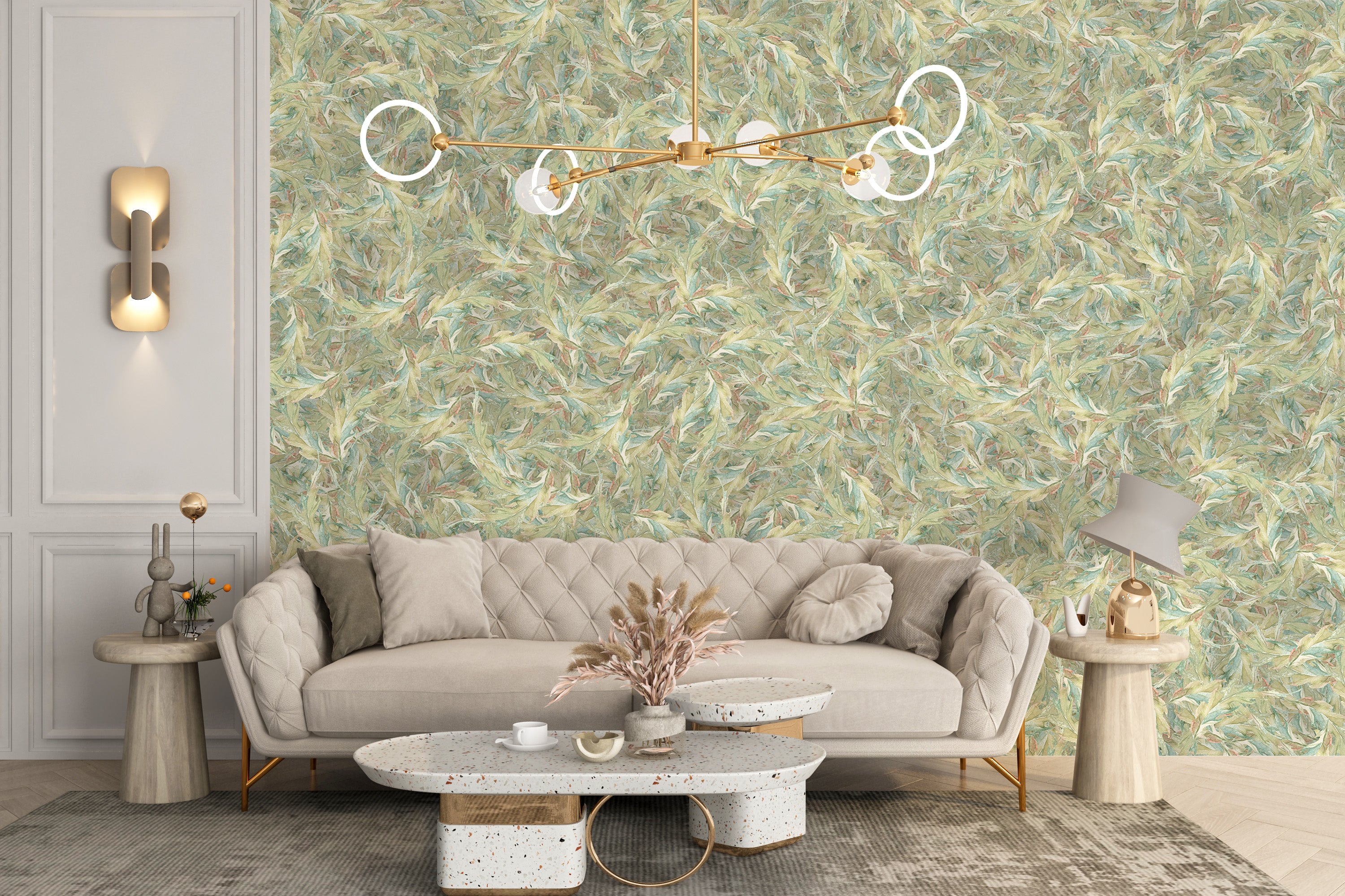 Watercolor Dancing Green Leaf Wallpaper Murals