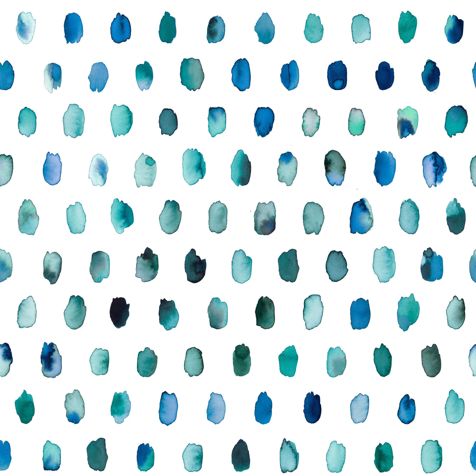 Playful blue watercolor dots on a clean, neutral backdrop.