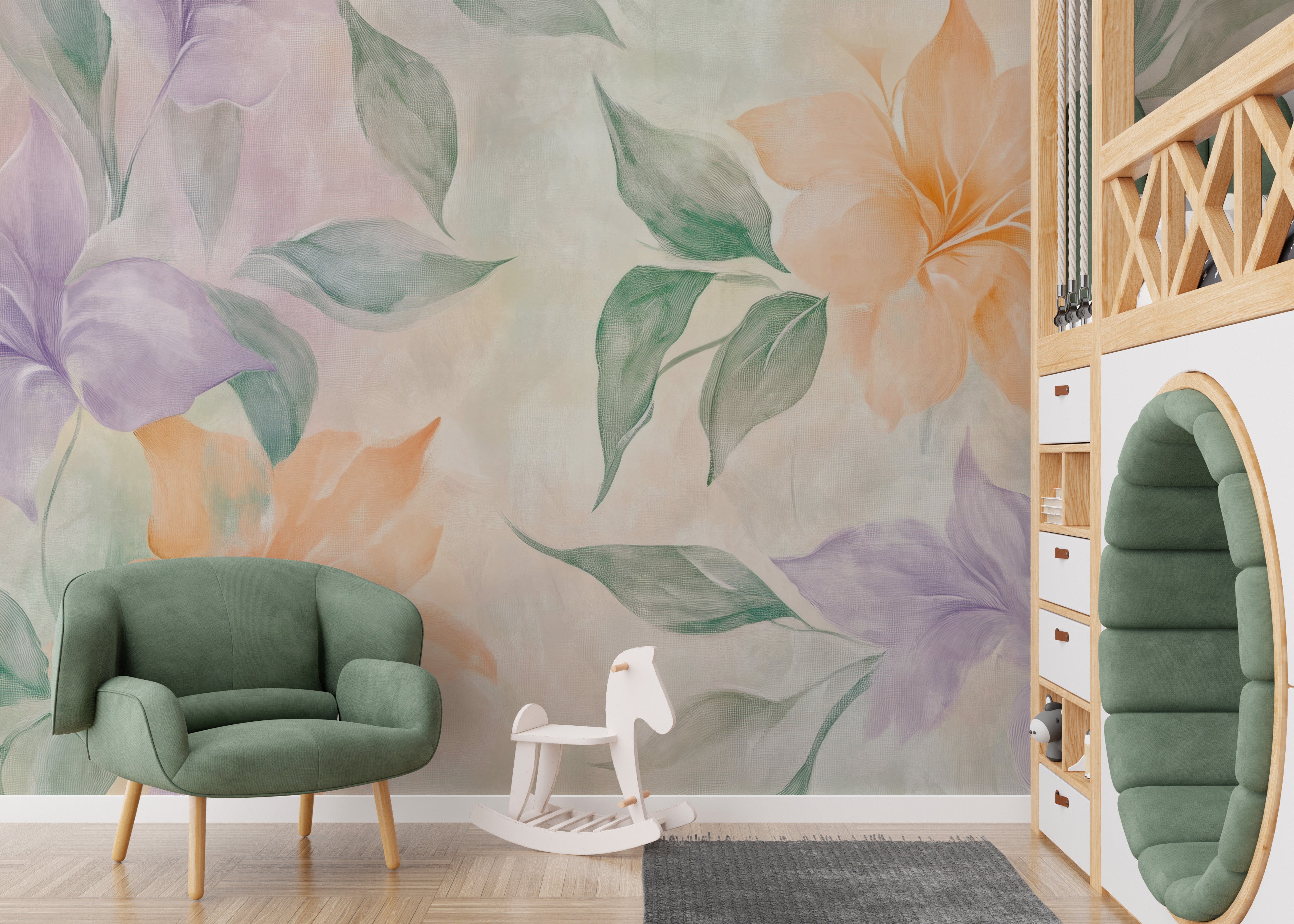 Soft watercolor floral mural for elegant interiors.