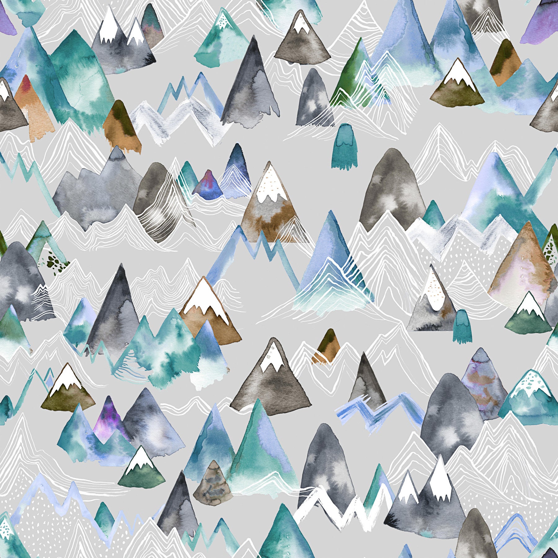 Watercolor Mountains Silver Gray Wallpaper⁠