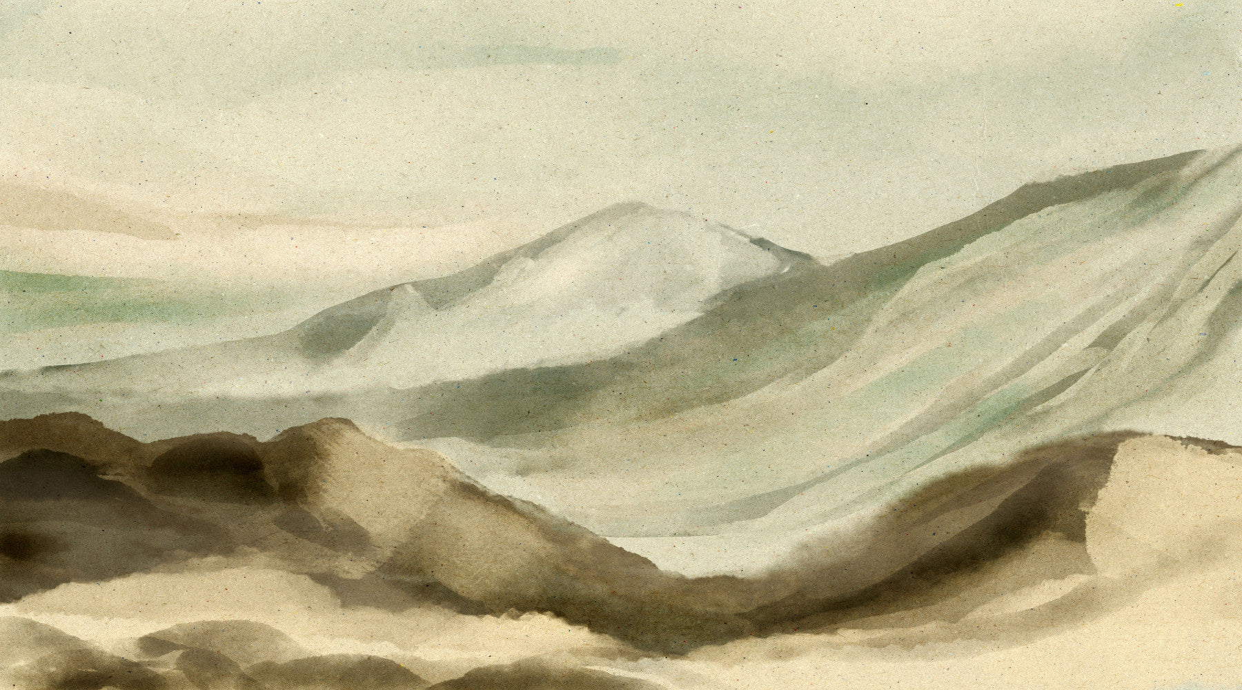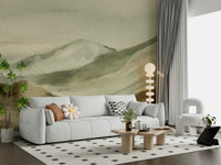 Invite calm into your home with this gentle watercolour scene. Earth tones blend smoothly, depicting a tranquil mountain range. Brushstrokes create a soft, hazy atmosphere. Use this wallpaper for walls to bring the outdoors in. The neutral colours easily enhance various interiors, from bedrooms seeking serenity to living areas wanting a touch of nature. It lends a peaceful quality to spaces.
