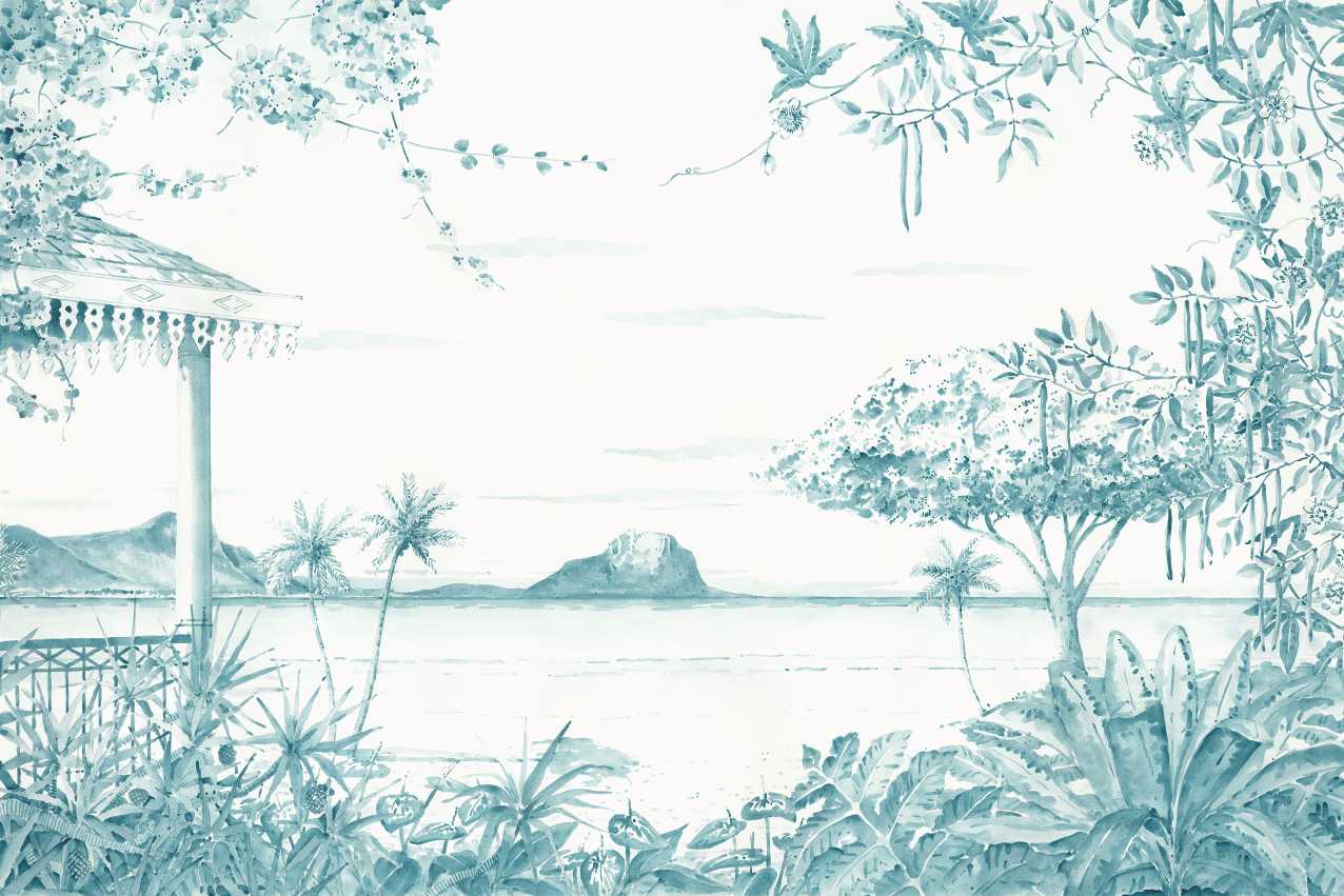 Tranquil ocean and palm tree wallpaper for interiors