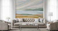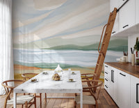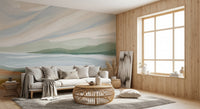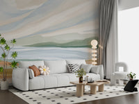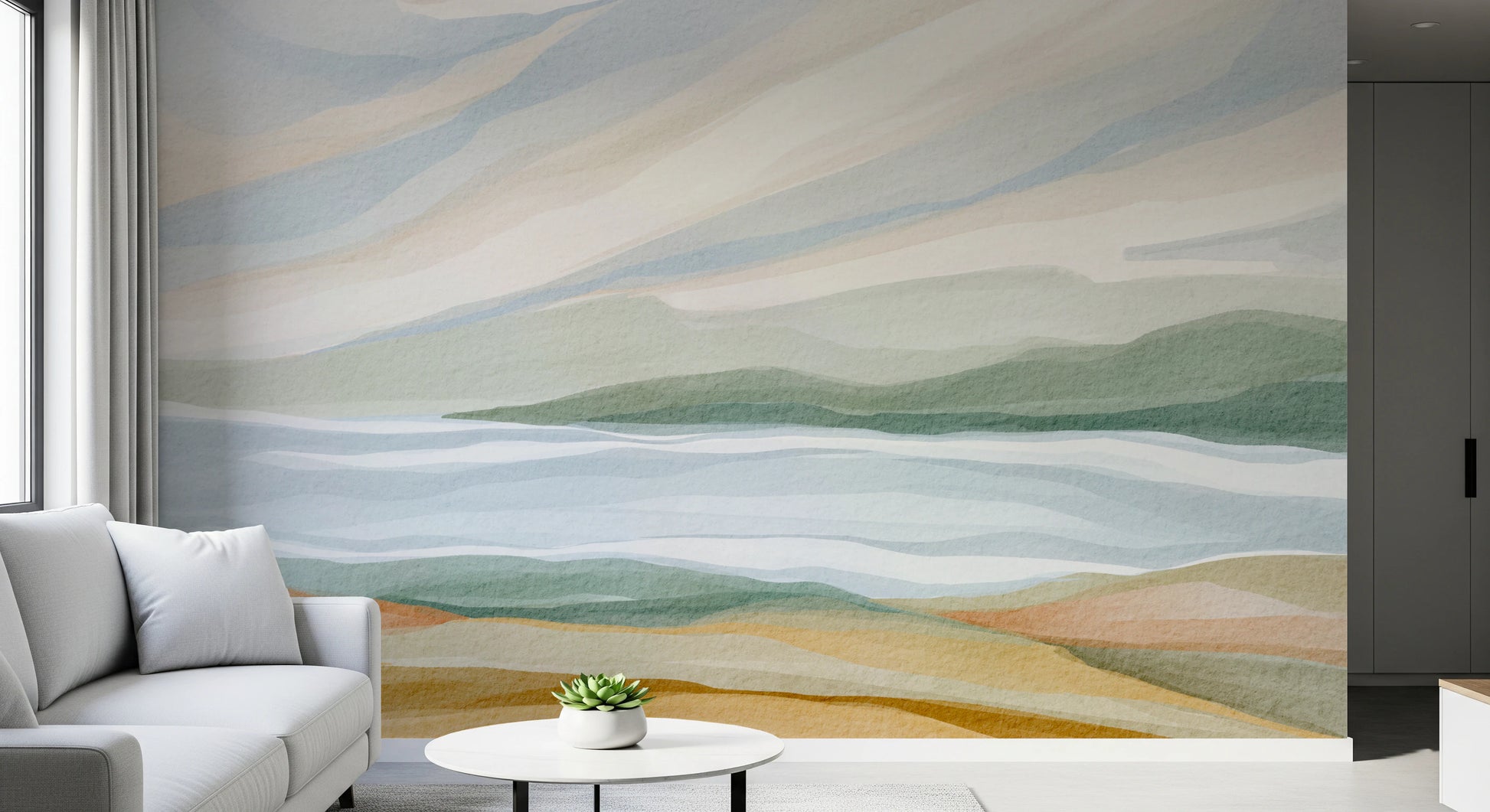 Introduce a serene, hand-painted touch to your home with this artful wallpaper for walls. A blend of gentle blues, greens, and earthy browns creates a calming, abstract landscape. The soft watercolour effect brings depth and dimension to any room, making it feel larger and more inviting. Consider this design for bedrooms, living rooms, or even home offices. The subtle colour palette complements various interior styles, from minimalist to modern farmhouse, adding a refined and understated elegance. Transform your walls into a tranquil vista with this delightful and timeless design.