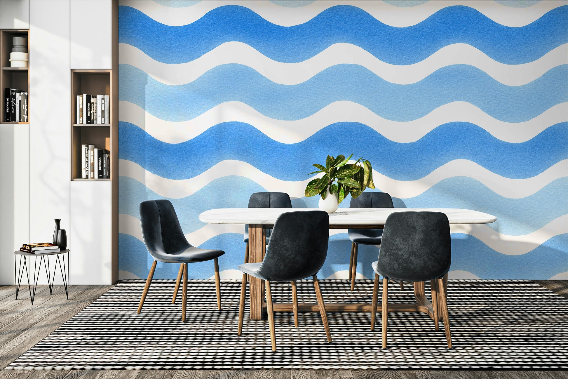 Dive into a world of tranquil vibes with this elegant blue wave design. The watercolor texture gives it a soft, hand-painted effect, bringing a soothing presence to any room. This simple wave pattern brings a contemporary style to your home decor. This wallpaper for walls creates a calming atmosphere perfect for a bedroom, bathroom, or even an office space. This design creates a serene coastal aesthetic. It introduces a touch of elegance to any space.