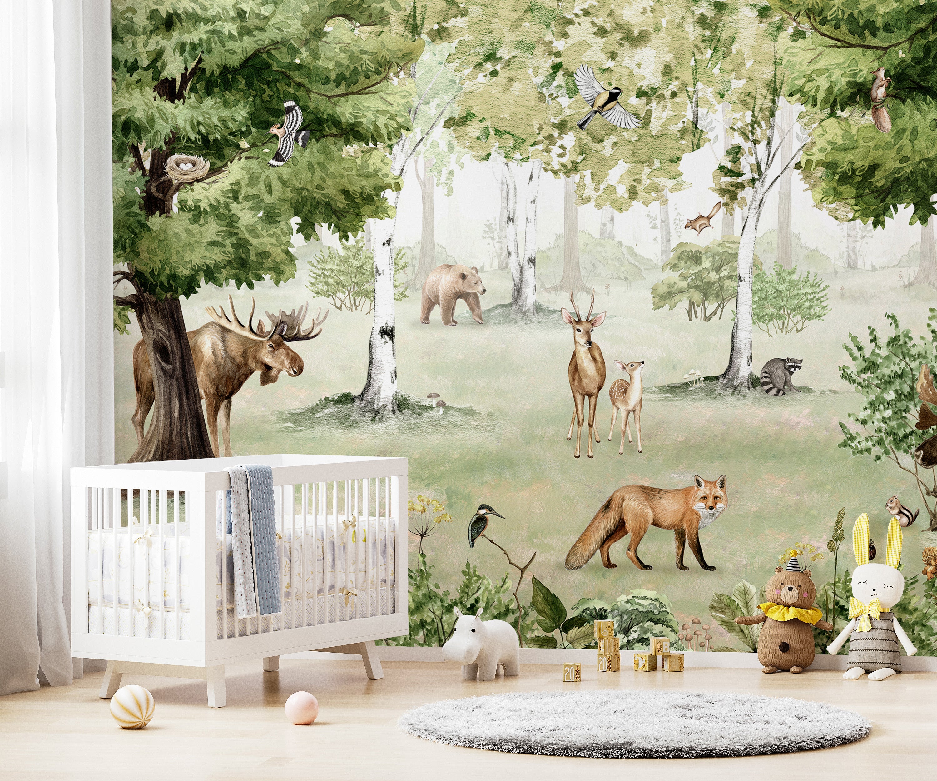 Delve into a forest of dreams with our Watercolor Woodland Wonders Mural Wallpaper. This enchanting design brings the magic of the woods to life with its soft watercolor palette and whimsical woodland creatures. The gentle hues and fluid artistry create a soothing, magical atmosphere, perfect for nurseries, playrooms, or any space in need of a touch of wonder. Ideal for fostering imagination and a love for nature, this Watercolor wallpaper mural is a portal to an enchanted forest where every leaf and creature tells a story. Transform your room into a peaceful woodland retreat with the Watercolor Woodland Wonders wallpaper.