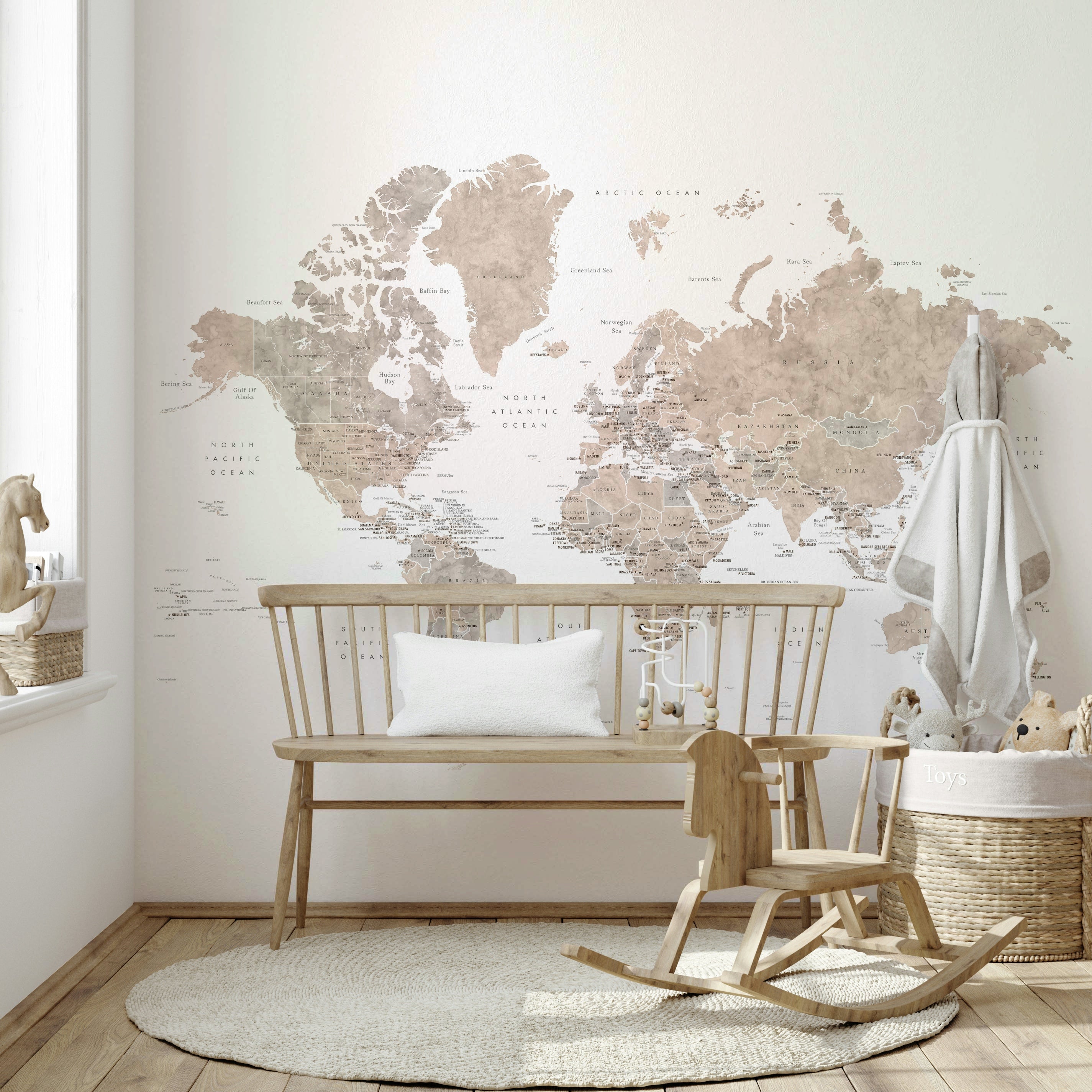 Add a colorful twist to your wall with the Watercolor World Map with Countries and Capitals – Abey. This detailed wall mural showcases country borders, capital cities, and continents in a soft watercolor palette, perfect for study areas, kids' rooms, or home offices. It's a great visual guide for geography lovers and curious minds. The map blends artistic charm with educational value, making it both stylish and practical. Ideal for those looking to add a thoughtful world view to their wall design.