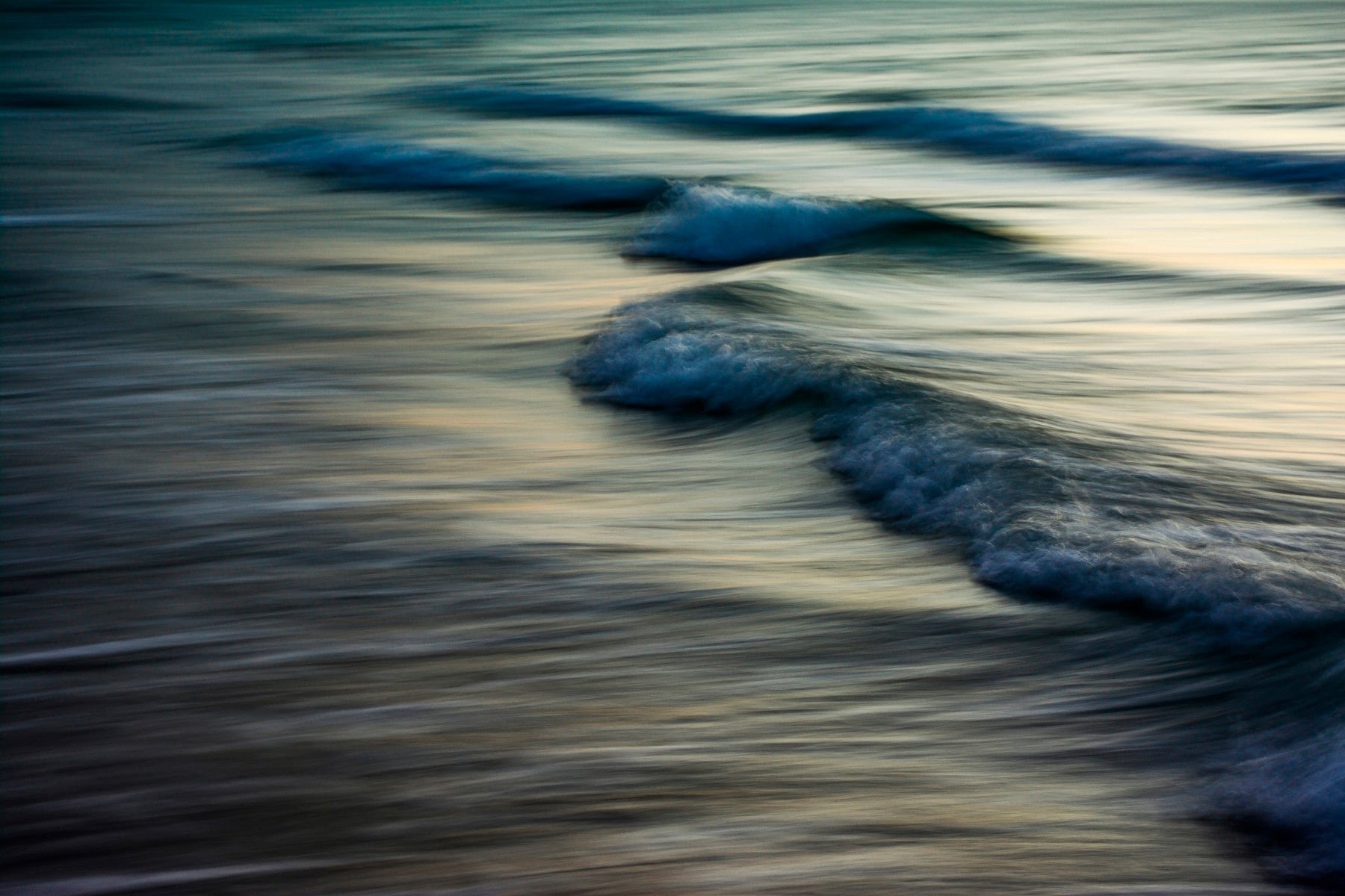 Immerse yourself in the tranquil rhythm of the ocean with Waves I. This captivating wallpaper captures the essence of movement, showcasing the dynamic energy of waves in a unique, artistic blur. The muted palette of blues, grays, and hints of golden light creates a calming, ethereal atmosphere. The motion-blurred effect transforms the familiar image of ocean waves into a mesmerizing abstract, perfect for creating a serene and contemplative digital space. Let the soothing ebb and flow of "Waves I" bring a touch of coastal tranquility to your everyday life. This wallpaper is ideal for those seeking a visually stunning and calming background that invokes the power and beauty of the sea.