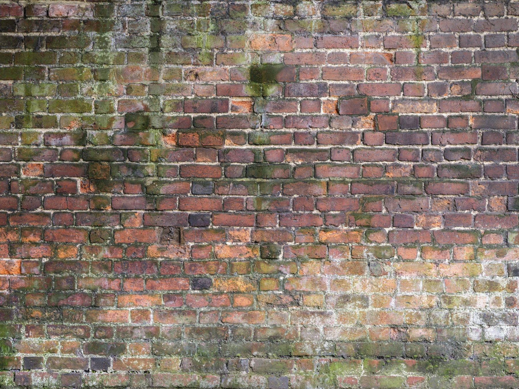 Old and rustic brick wall. Embrace the timeless appeal of distressed textures. This wallpaper features an old brick wall covered with moss. The red and green hues create a visual interest suitable for rustic homes or modern spaces. The design is impactful; it complements interiors wanting a mix of cozy and raw textures. This wallpaper for walls transforms a plain space into something more, adding a warm, welcoming touch to dining rooms or study.