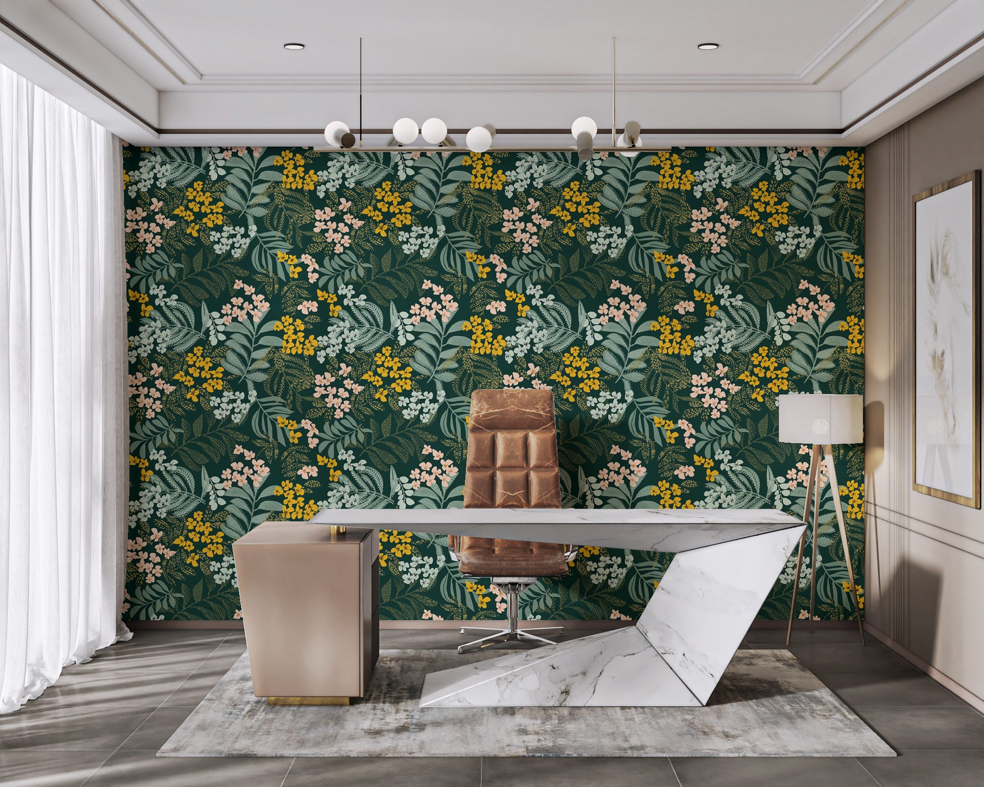 Immerse yourself in the whimsical forest flora wallpaper, where the essence of lush groves is captured for your home. This green wallpaper is a symphony of verdant charm, where delicate blooms and rich foliage dance in harmonious serenity. Each panel is a portal to an enchanted woodland, offering a vibrant retreat from the mundane. Embrace a mural that resonates with the rhythm of nature, inviting a burst of life's vitality into your personal haven. It's a piece that doesn't just adorn a wall, but weaves a tale of nature's unspoken beauty, turning the ordinary into realms of visual poetry.