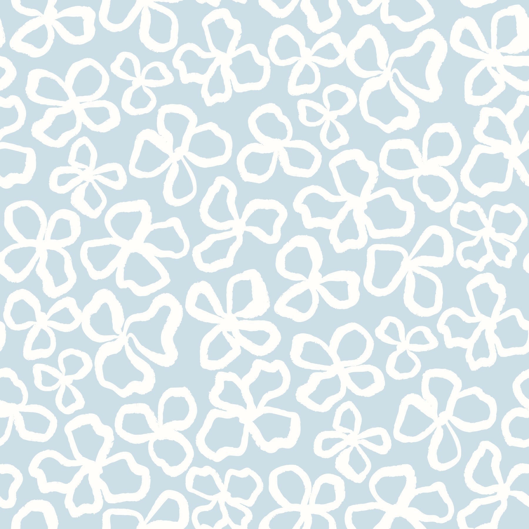 Embrace a touch of carefree charm with this wallpaper, featuring a playful scattering of white, hand-painted flowers on a calming light blue background. The slightly imperfect, organic shapes of the blossoms lend a unique, artisanal feel to the design, perfect for adding a touch of personality to any space. Its versatile palette and gentle pattern make it ideal for bedrooms, nurseries, or living areas. Let this charming wallpaper infuse your space with lightheartedness and a sense of airy serenity.