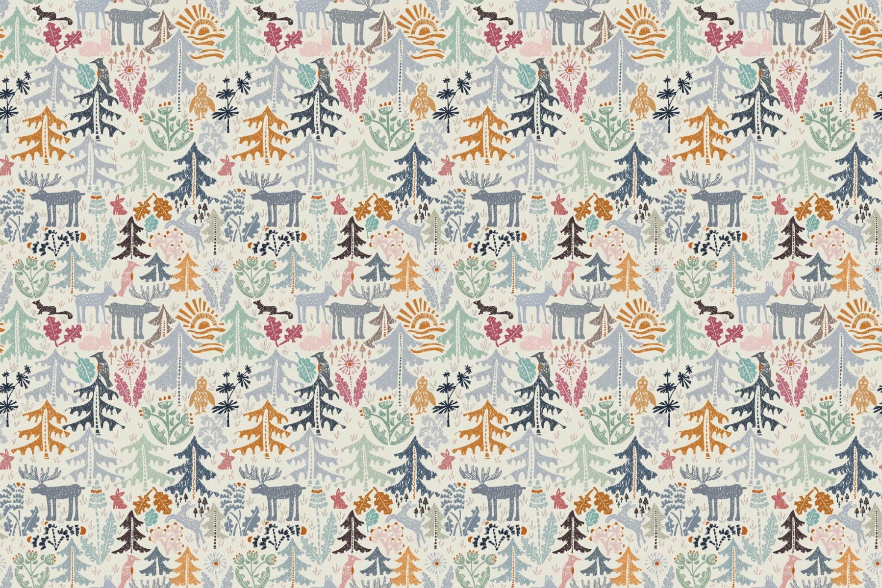 Artistic Woodland Creatures Wallpaper Design