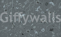 Detailed gray forest mural capturing the serene atmosphere of a woodland
