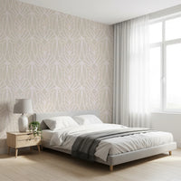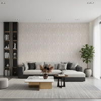 Transform walls with this elegant arches pattern wallpaper for walls. The subtle and sophisticated design features interlocking semi-circles and radiating lines in warm, muted tones. Perfect for creating a calming and inviting atmosphere, this wallpaper complements a variety of interior styles, from classic to contemporary. The textured effect adds depth and visual interest, making it ideal for a feature wall in your living room, bedroom, or even a home office. Enhance your space with this touch of quiet luxury and transform any room into an elegant retreat.