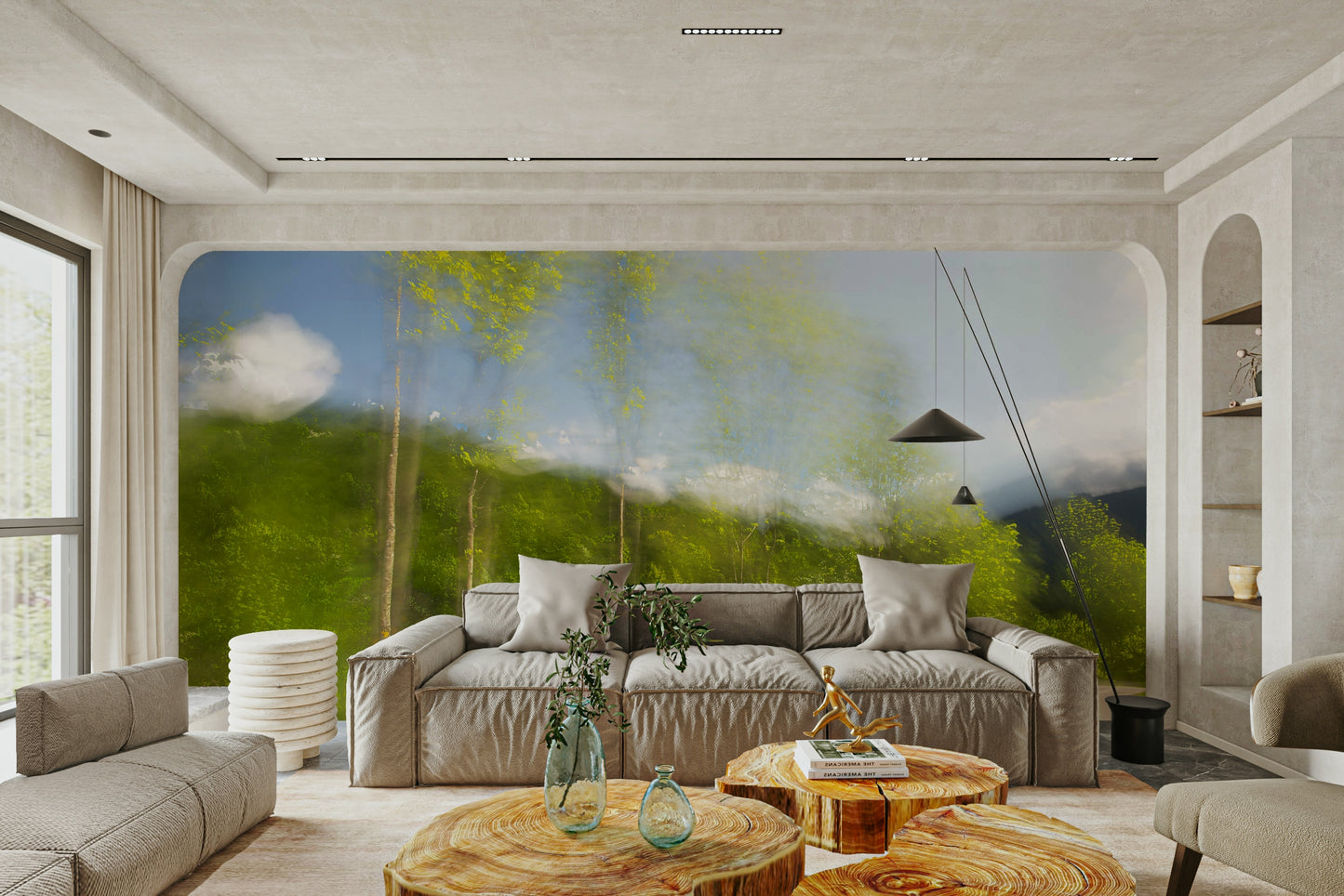Whispering Greens Blurred Nature Photography of Trees and Sky Wall Mural