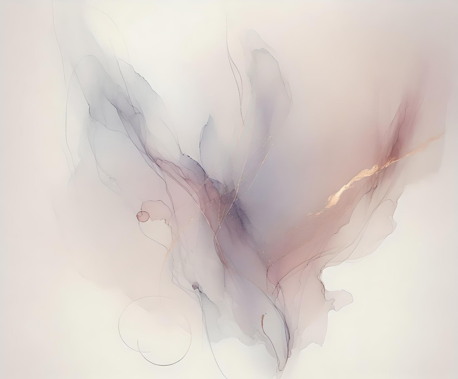 Experience the subtle luxury of 'Whispering Hues,' an abstract wallpaper design that marries ethereal beauty with a touch of opulence. Delicate shades of blush pink and soft grey dance across the canvas, creating a dreamy, almost weightless effect. Subtle strokes of gold delicately accentuate the flowing forms, adding a hint of glamour without overpowering the overall serenity. This wallpaper is ideal for adding a sophisticated and calming touch to any space, from bedrooms and living rooms to meditation rooms and spas.