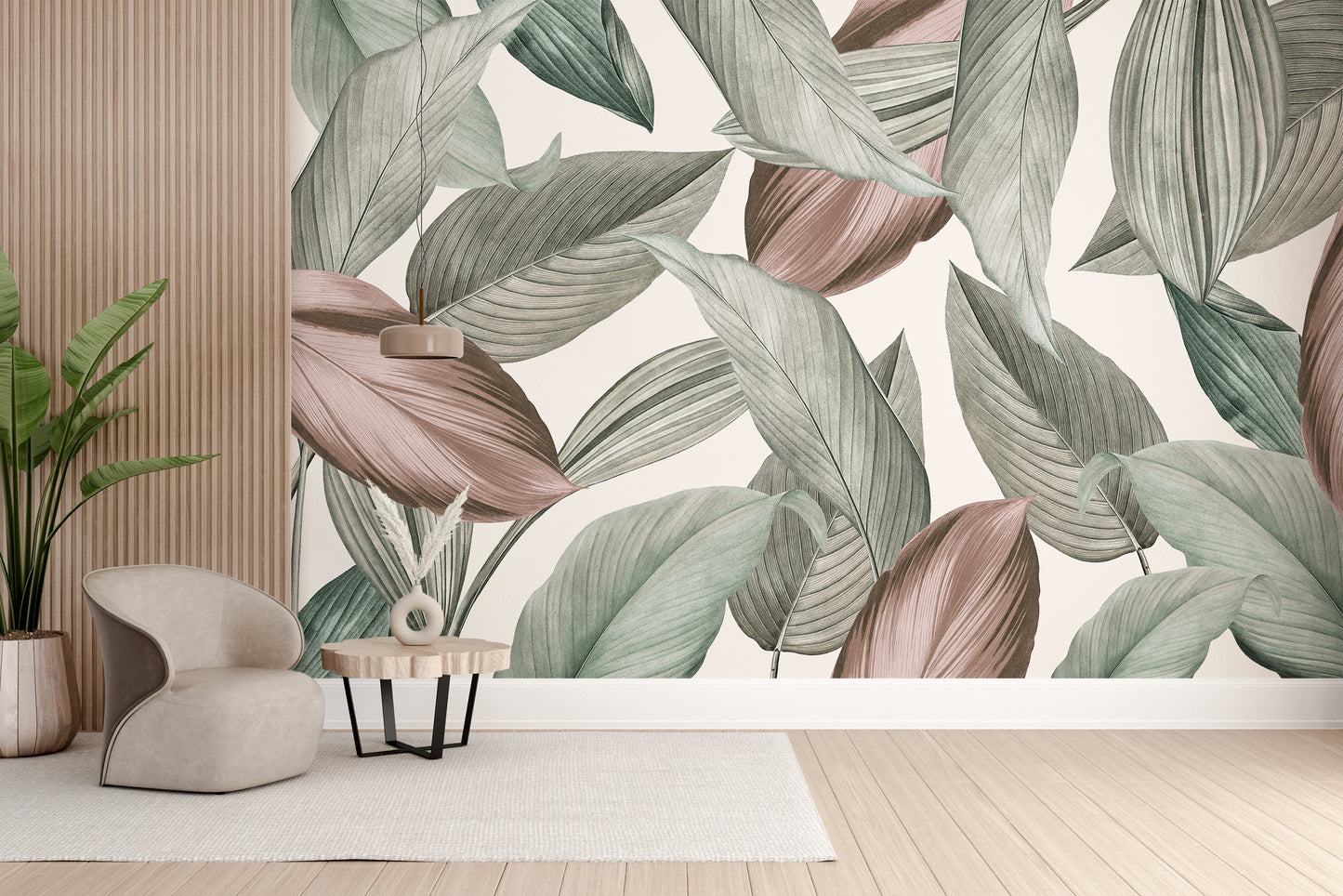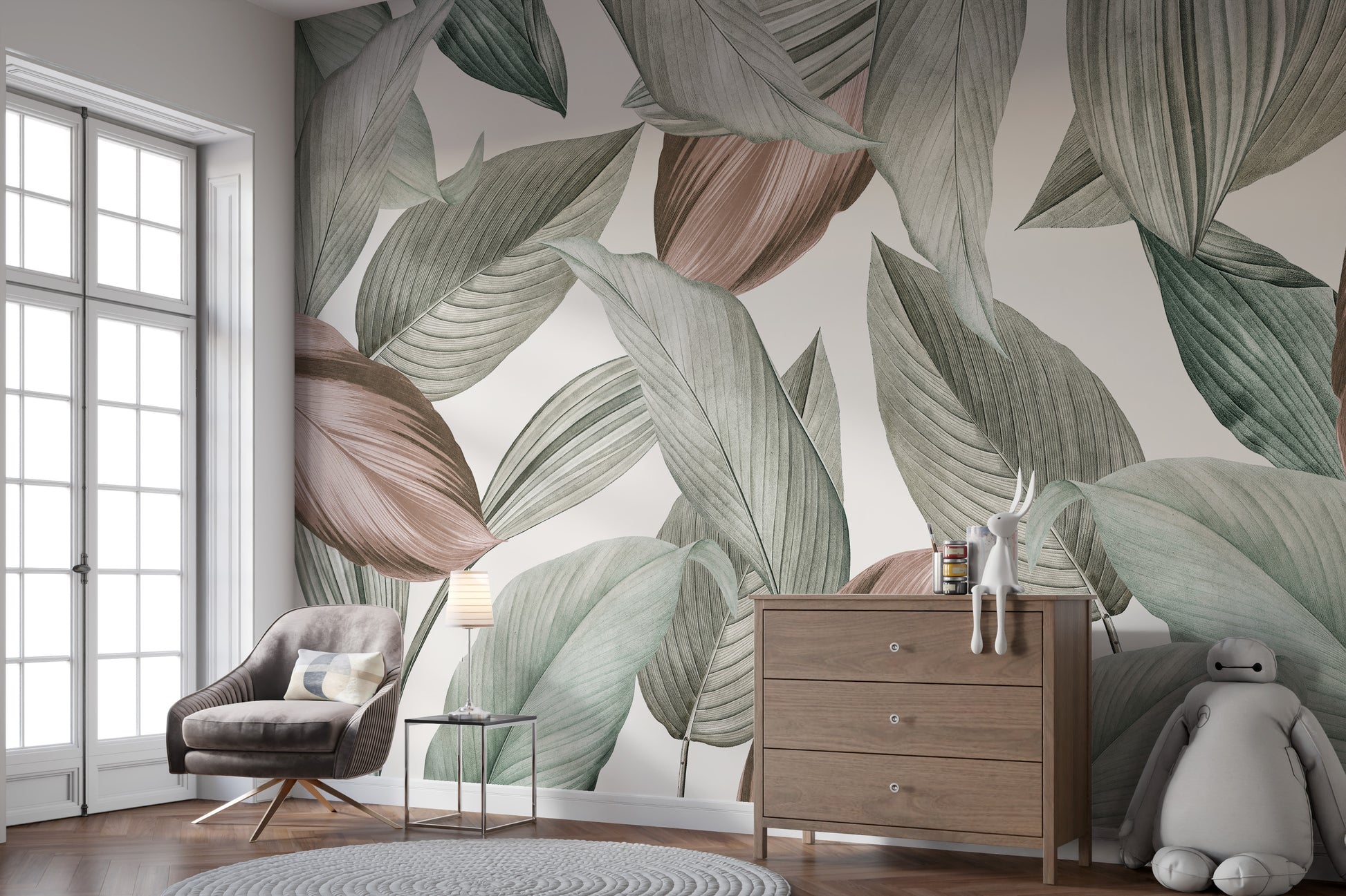Rejuvenate your home environment with the whispering leaves wallpaper mural, a design that seamlessly melds the lush outdoors with your indoor spaces. This leaves wallpaper invites a sense of calm, offering a sophisticated backdrop that complements both contemporary and traditional interiors. Its muted palette of foliage unfolds across the walls to forge a gentle connection with nature. With its simple installation and enduring material, this mural is a practical choice for those looking to infuse their home with a breath of natural elegance. Not only does it promise a swift application, but it also assures durability that withstands the test of time.