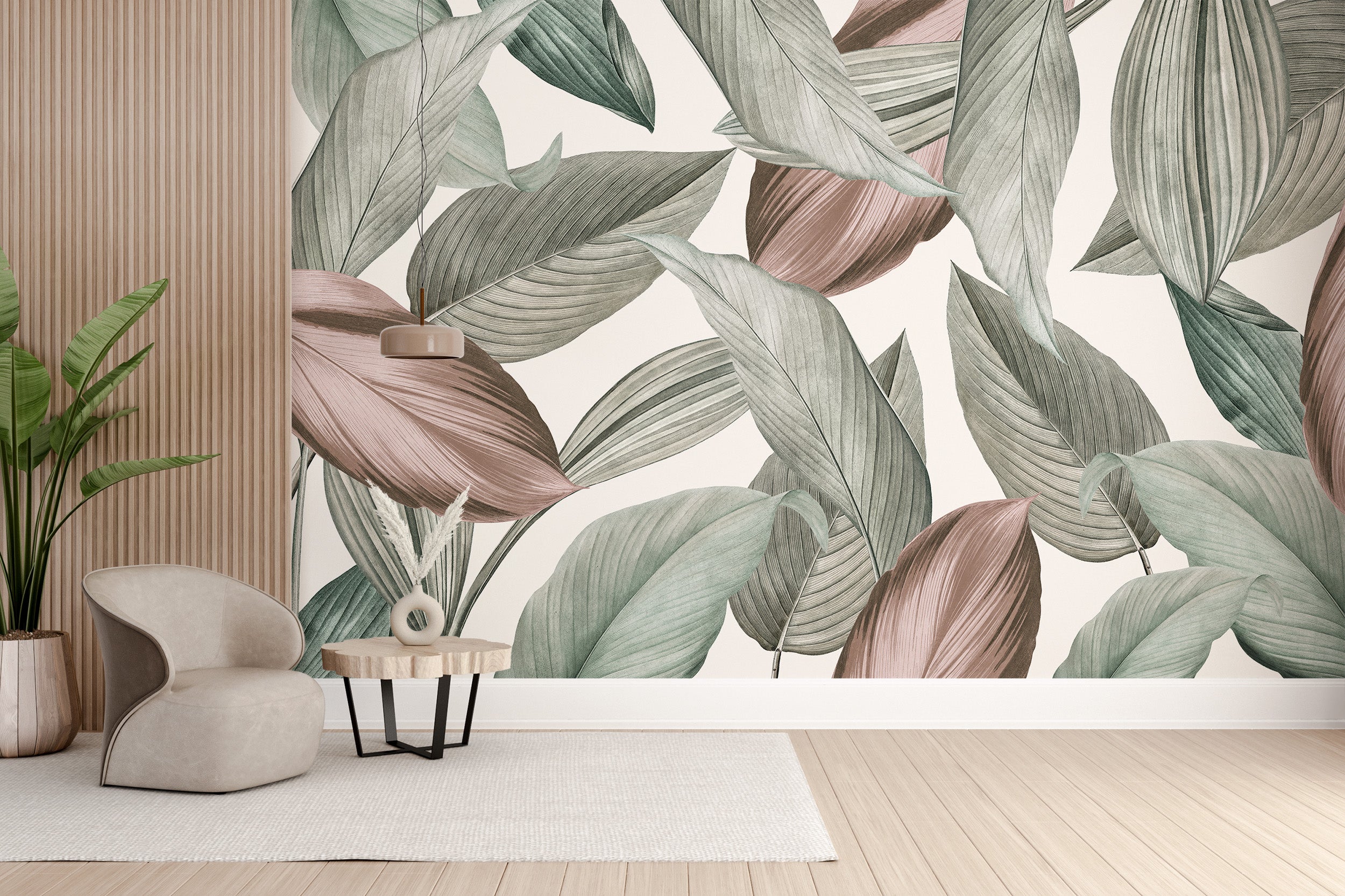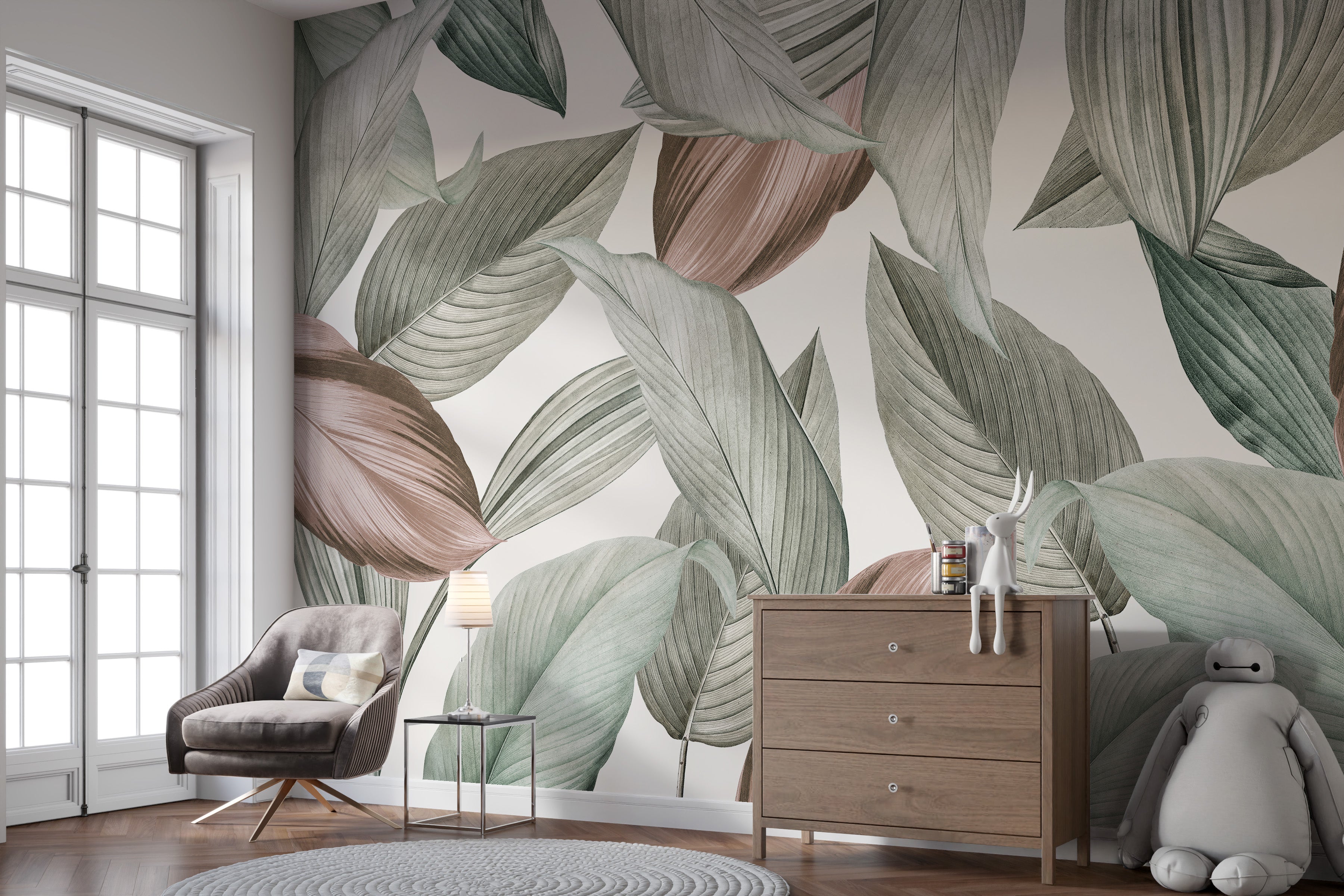 Artistic leaf mural for tranquil interiors