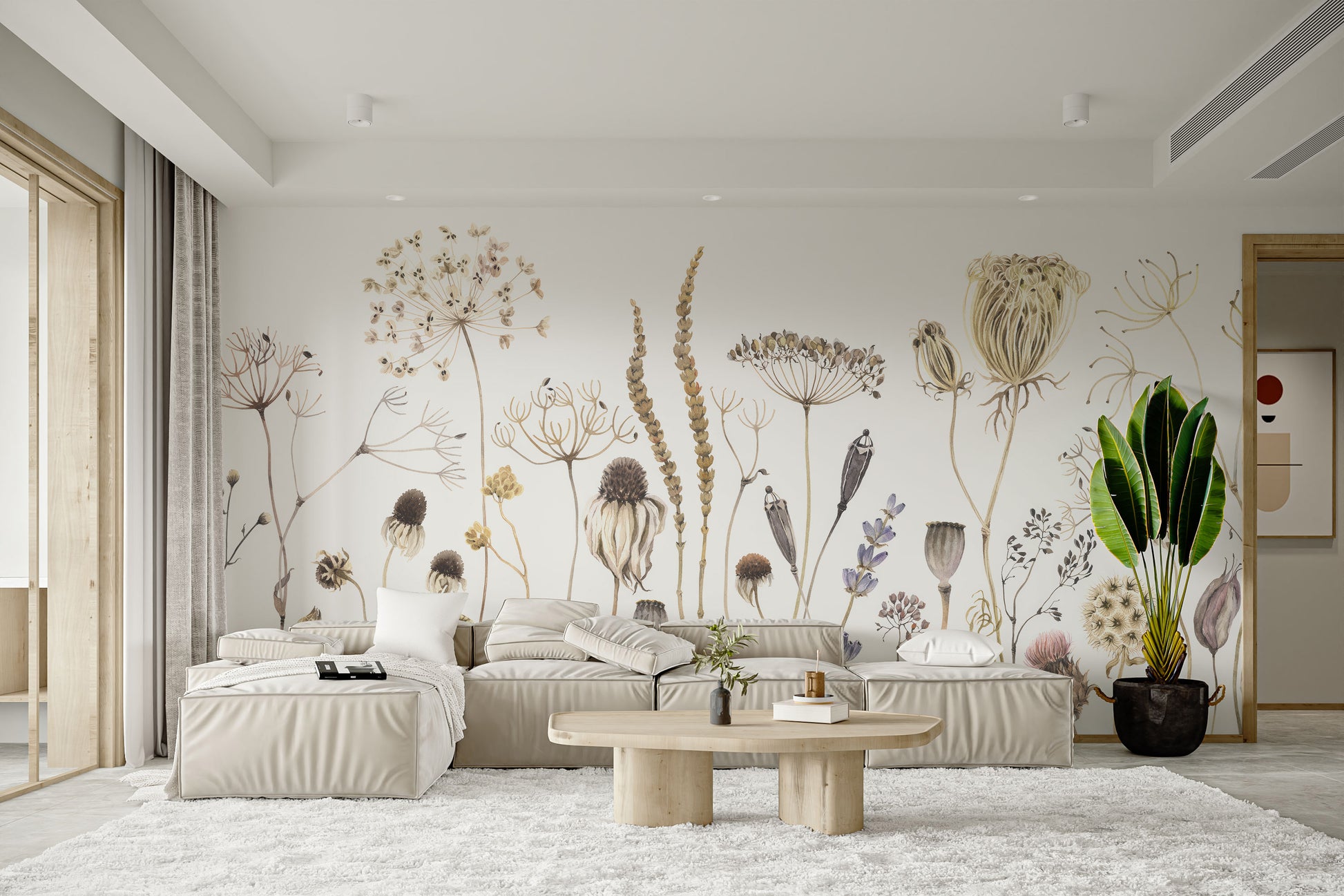 Captivating meadow wallpaper mural for relaxing living room vibes.